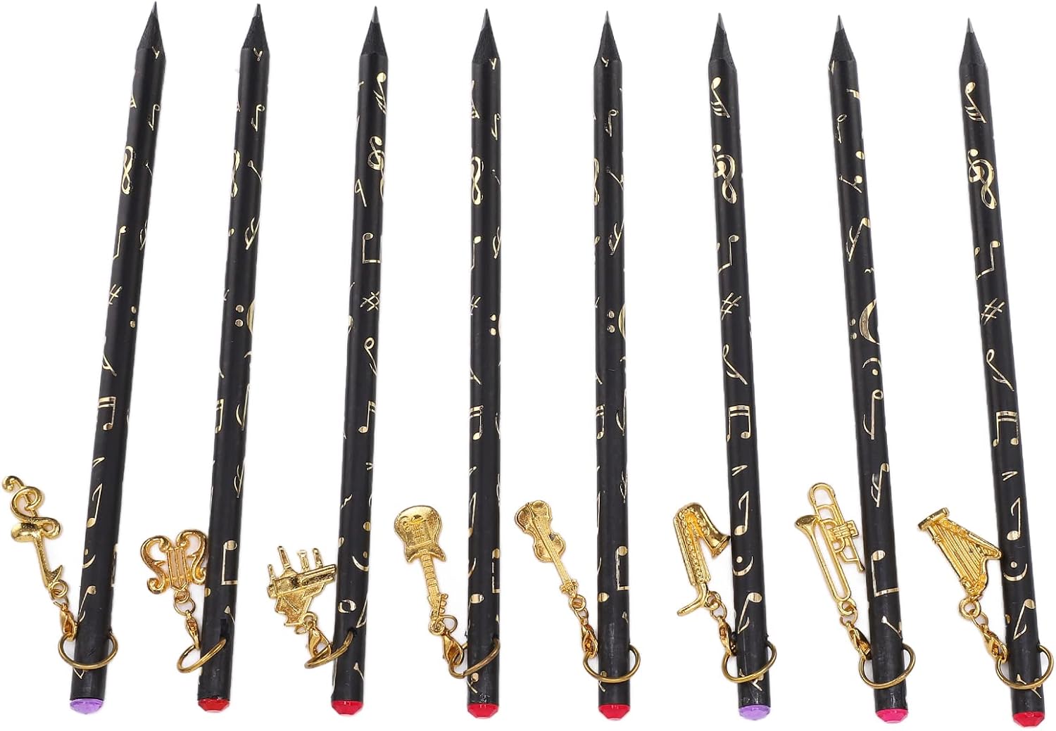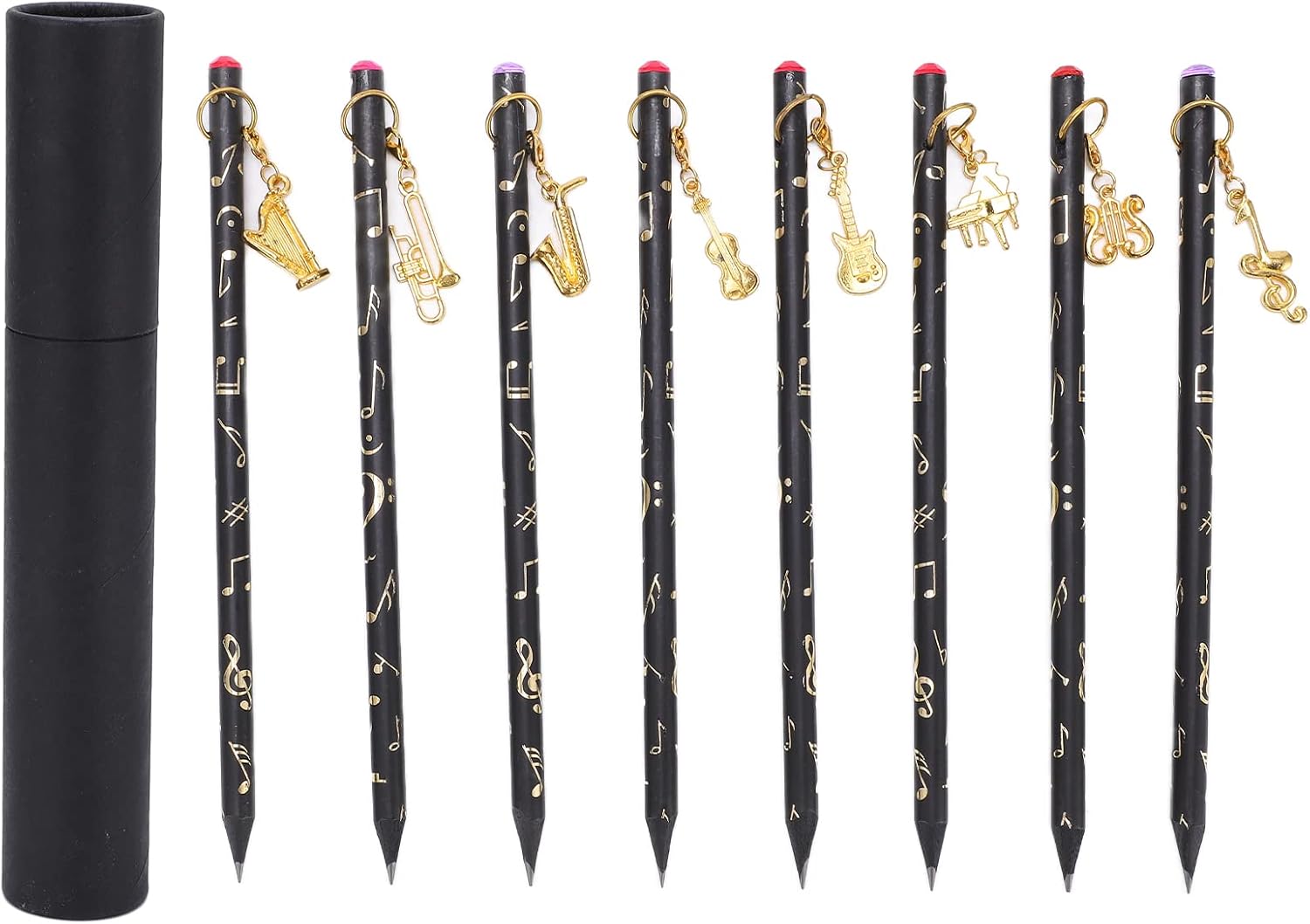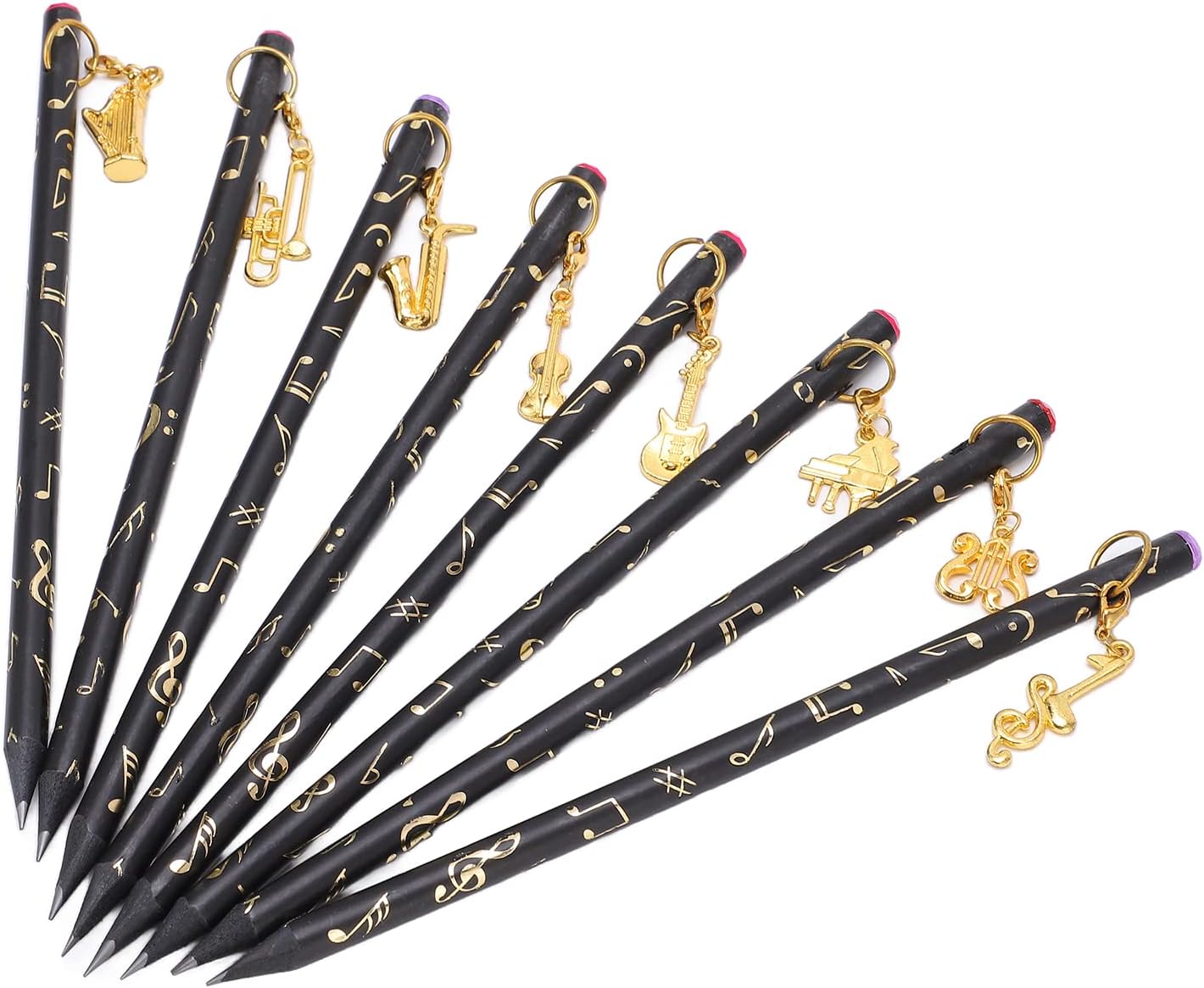 [Ampia quantità] - Con 8 matite in totale, questo set offre un'offerta abbondante per tutte le tue esigenze di scrittura, assicurandoti di non esaurire mai. [Manipolazione senza sforzo] - Il design leggero e sottile di queste matite offre una maniglia confortevole, consentendo una scrittura facile e ininterrotta. [Affascinante ciondolo] - Ogni matita è decorata con un ciondolo unico, che presenta una bellissima finitura in metallo che aggiunge un tocco di eleganza alla tua collezione di articoli di cartoleria. [Portabilità pratica] - Fatte con materiali premium, queste matite compatte occupano un minimo di spazio, il che li rende senza sforzo per il trasporto nella borsa o nella tasca. [Universal ] - Adatto a bambini e adulti, questi pastelli ispirati alla musica fanno un per amanti della musica, artisti, studenti o chiunque apprezzi l'arte della scrittura.