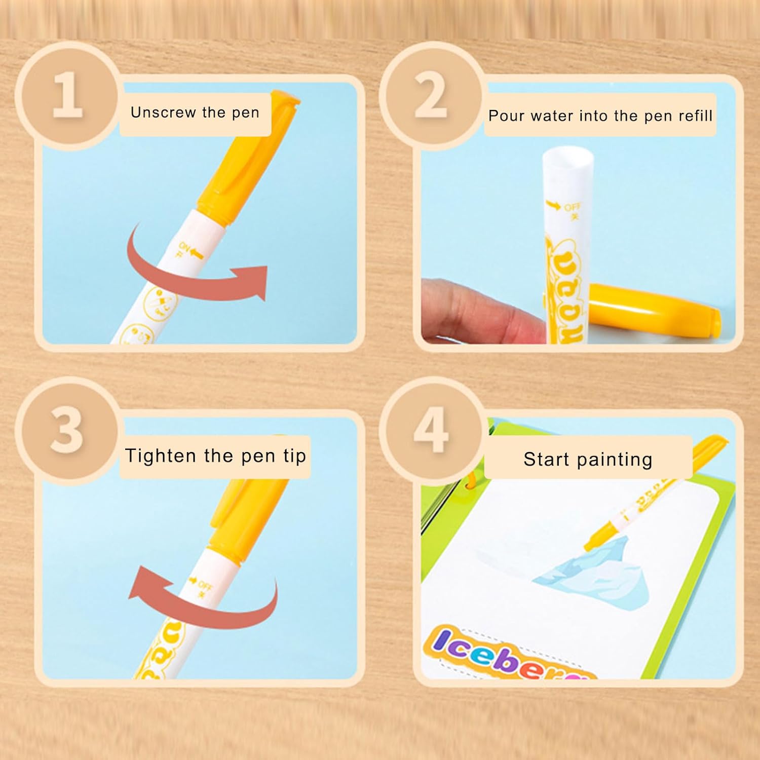 Utilizzare materiale cartaceo selezionato Questo libro per acquerelli viene fornito con penna ad acqua e libro di carte bianche, garantendo un'esperienza di pittura senza soluzione di continuità per uso domestico, aula o per viaggi, libro da colorare riutilizzabile offre divertimento e attività educativa che può essere goduto Scopri infinita creatività con il libro da colorare ad acqua, misura libera pittura a pistone ad acqua, arte con solo acqua per risvegliare, perfetto per i bambini artisti Ideale per bambini dai 4 agli 8 anni, questi disegni di libri da colorare per promuovere le abilità artistiche e lo sviluppo cognitivo nei bambini in età prescolare e hanno interesse per l'arte e l'apprendimento delle lingue