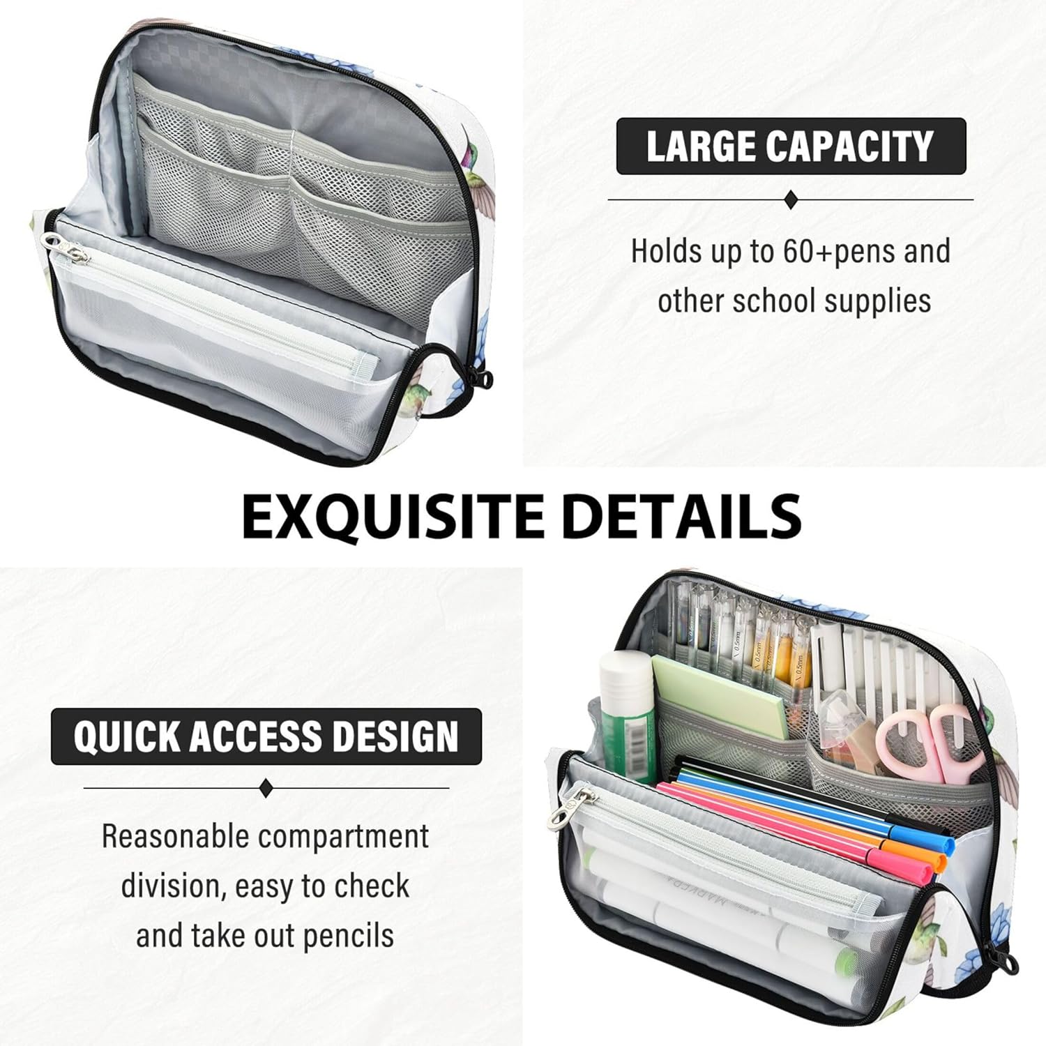 Versatile funzionalità in piedi: la borsa cosmetica per matite si apre piatta e si ripiega in modo sicuro per creare un contenitore autoportante, mescolando la portabilità con la comodità della scrivania Progettato per la resistenza: dai banchi di scuola alle borse da viaggio, l'organizzazione degli insegnanti per la classe resiste a attrito e sporco, con nylon a trama fitta che fornisce affidabilità a lungo termine Layout intelligente per riporre: tieni le tue forniture in ordine: le borse da viaggio per matite includono uno scomparto principale, una tasca in rete con cerniera e uno slot aperto per separare e accedere agli oggetti con facilità Ideale per casa, scuola o viaggio: organizza cosmetici, cavi, penne e altri piccoli oggetti con materiale scolastico per ragazze, una soluzione compatta e utile per la vita in movimento Personalizzazione amichevole: con motivi vivaci e opzioni di foto o testo personalizzate, le borse per giocattoli per matite diventano un regalo premuroso per studenti, creativi e viaggiatori frequenti