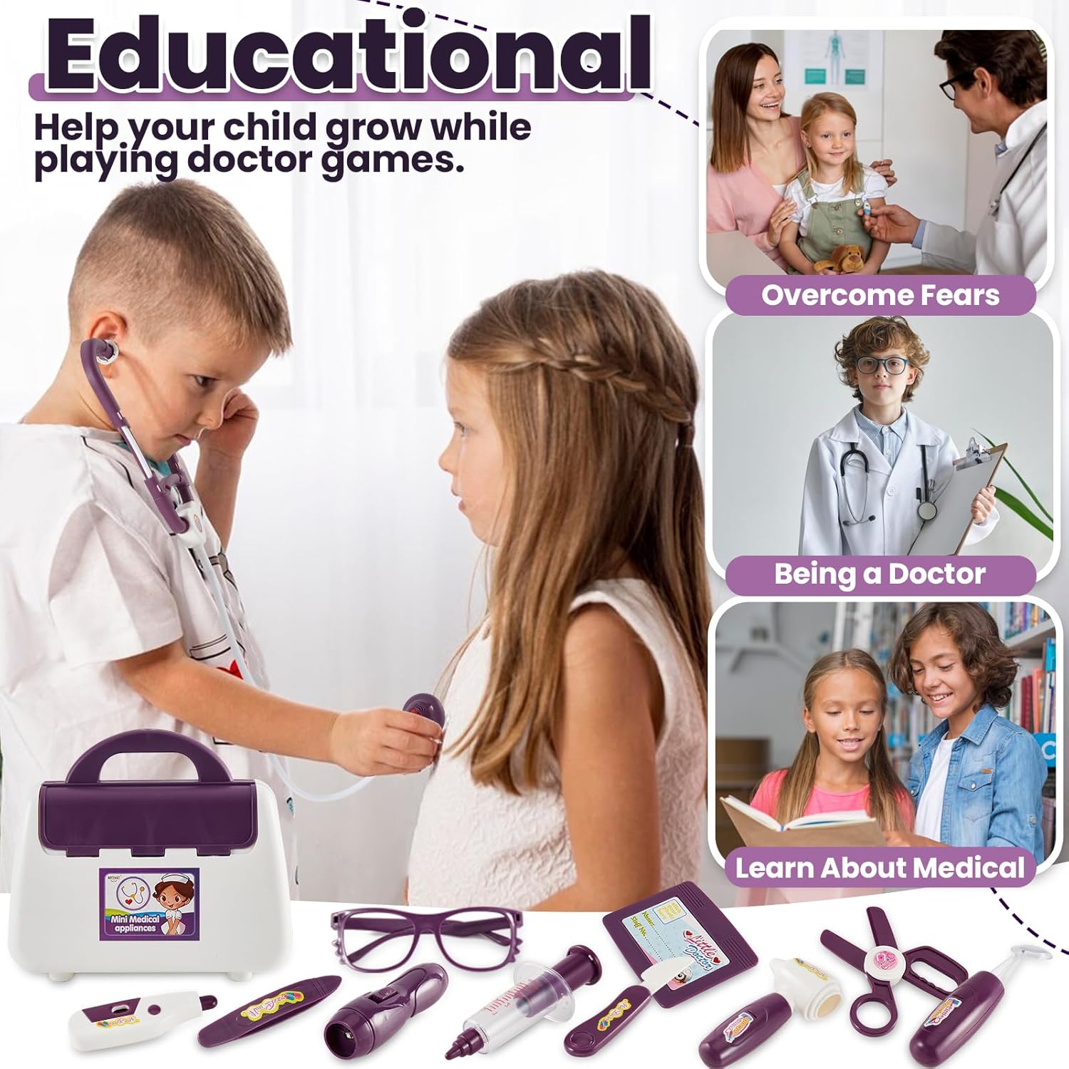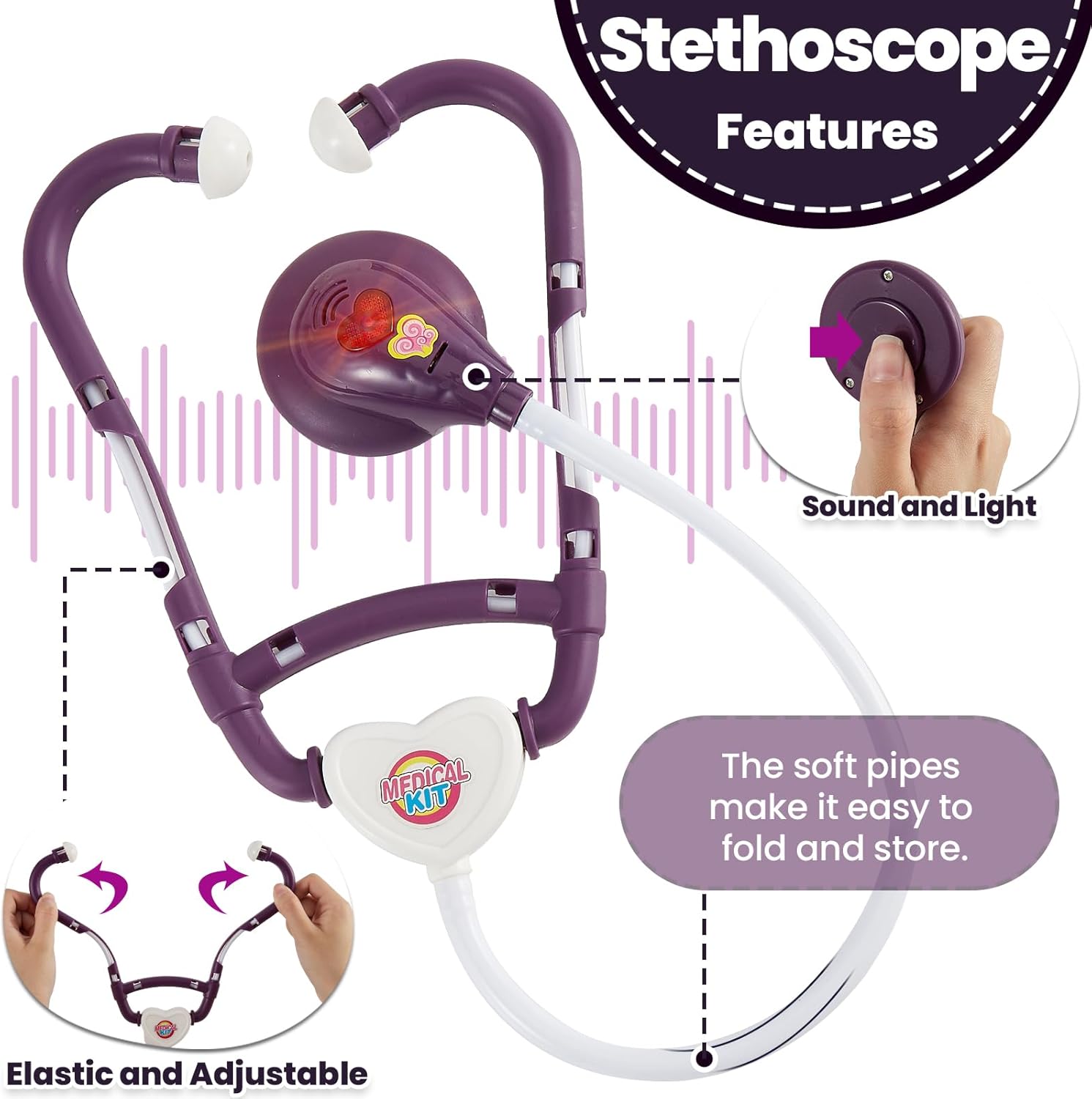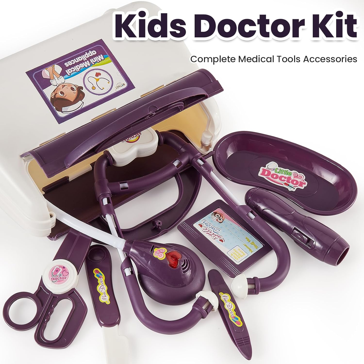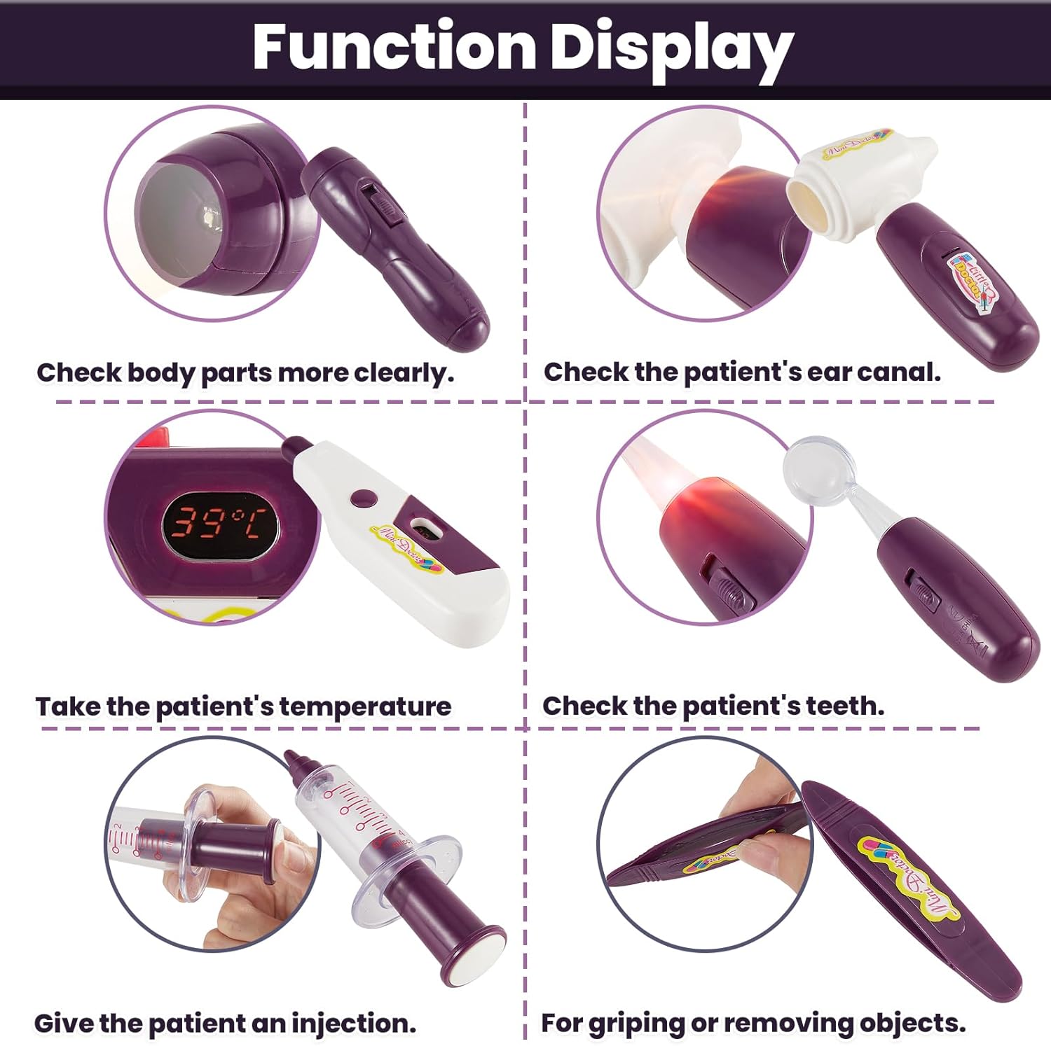Gioco di ruolo di veterinari e dottori: con accessori medici completi, i bambini possono fingere di essere veterinari/medici/infermieri per esaminare e curare animali/pazienti. Non solo puoi sviluppare un senso di responsabilità e di cura, ma puoi anche imparare a prenderti cura degli altri mentre giochi. Giocattolo stetoscopio elettronico: lo stetoscopio può emettere battito cardiaco, suono e luce rossa. I tubi auricolari sono elastici e possono adattarsi a diverse circonferenze della testa. Il design del tubo lo rende facile da piegare e riporre. Giocattoli medici realistici: torce elettriche, termometri, specchietti per la bocca e otoscopi possono emettere luce e illuminare l'area dell'esame. Forbici, pinzette e fiale possono essere aperte e chiuse e le siringhe hanno un design a molla che spinge lo stantuffo. Valigetta da medico per bambini: dimensioni: 22x19x9 cm. Tutti gli accessori possono essere riposti in una valigetta da medico per aiutare il tuo bambino ad abituarsi ad organizzare la stanza e a mantenerla in ordine. Allo stesso tempo, è facile da portare con te ovunque. Regalo per bambini di 3 4 5 anni: il set da gioco del medico non solo offre intrattenimento ai bambini, ma anche un'importante opportunità per i bambini di imitare gli adulti e sperimentare il processo medico, che è un buon giocattolo educativo. Adatto come regalo/premio di compleanno per ragazze/ragazzi dai 3 anni in su.
