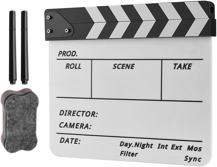 Sia che tu stia catturando un vlog o dirigendo un lungometraggio, la Clapper Board è un accessorio essenziale che porta preciso e chiaro a ogni scena d'azione Questo pannello in pellicola da 30,5 x 25,4 cm è realizzato in acrilico resistente e facile da scrivere e cancellare, rendendolo perfetto per un uso ripetuto in qualsiasi ambiente di ripresa Perfettamente adatto per l'insegnamento in classe di film, la produzione di video e cortometraggi, questa lavagna migliora l'organizzazione e la comunicazione Per registi, assistenti registi, studenti e creatori di video, questa lavagna è uno strumento versatile per progetti sia professionali che amatoriali L'assicella viene fornita con una gomma per lavagna e 2 penne, garantendo una chiara visibilità delle informazioni sulla scena e una gestione efficiente