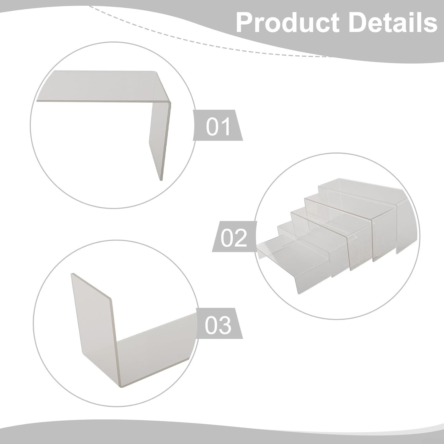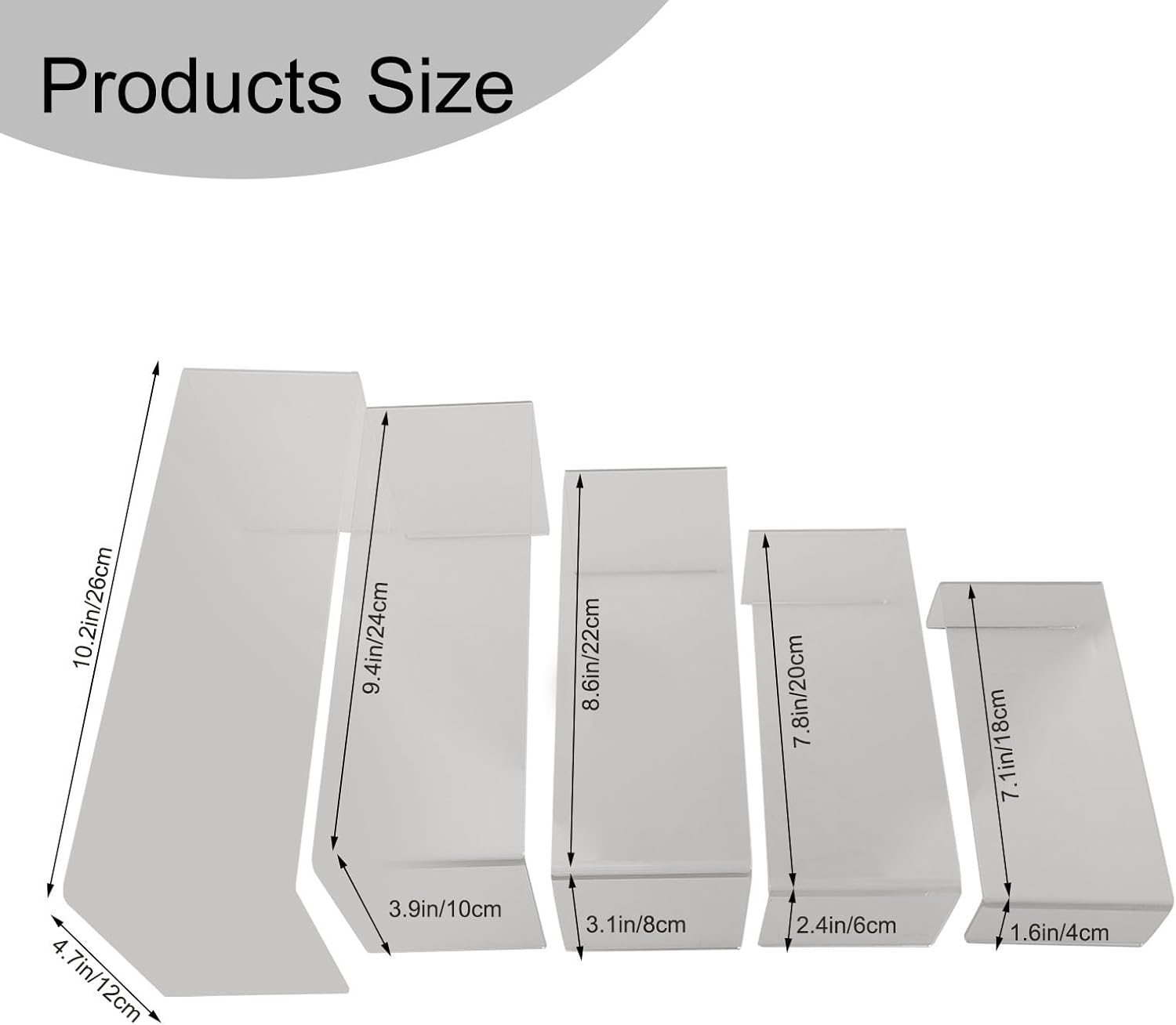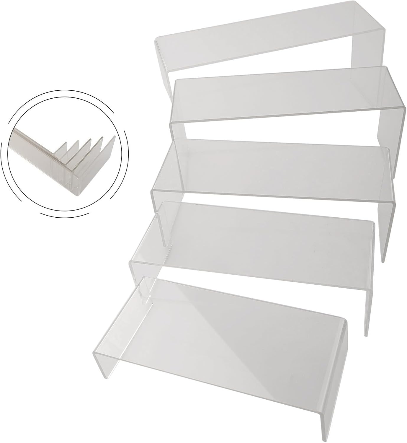 [Set versatile con 5 calzini in acrilico] – Contiene cinque scaffali in acrilico trasparente, per la presentazione accattivante di gioielli, giocattoli o articoli fatti a mano. Perfetto per bancone di negozi, esposizioni e spazi commerciali, per una presentazione elegante e organizzata dei tuoi prodotti. Materiale trasparente di alta qualità: gli scaffali sono realizzati in acrilico robusto e trasparente, in modo che i vostri articoli siano sempre ben visibili e presentati in modo ottimale. Il design trasparente garantisce un aspetto elegante e sottolinea la qualità dei vostri prodotti. Facile da sistemare e facile da montare: grazie al design intelligente per nidificare, le basi possono essere facilmente montate, riposte in modo salvaspazio e organizzate individualmente. In questo modo è possibile personalizzare la presentazione in base alle proprie esigenze in qualsiasi momento. [Soluzione di presentazione accattivante] - Dai ai tuoi prodotti un look professionale e attraente. Che si tratti di vendita, esposizione o uso personale, aumenta l'impatto visivo dei prodotti esposti e suscita l'interesse dei potenziali clienti. [SPECIFICHE & NOTA] - Il set contiene 5 basi in acrilico in colore trasparente, le dimensioni si prega di fare riferimento alle immagini del prodotto. Si prega di verificare le dimensioni sulla propria tabella delle taglie prima dell'acquisto.