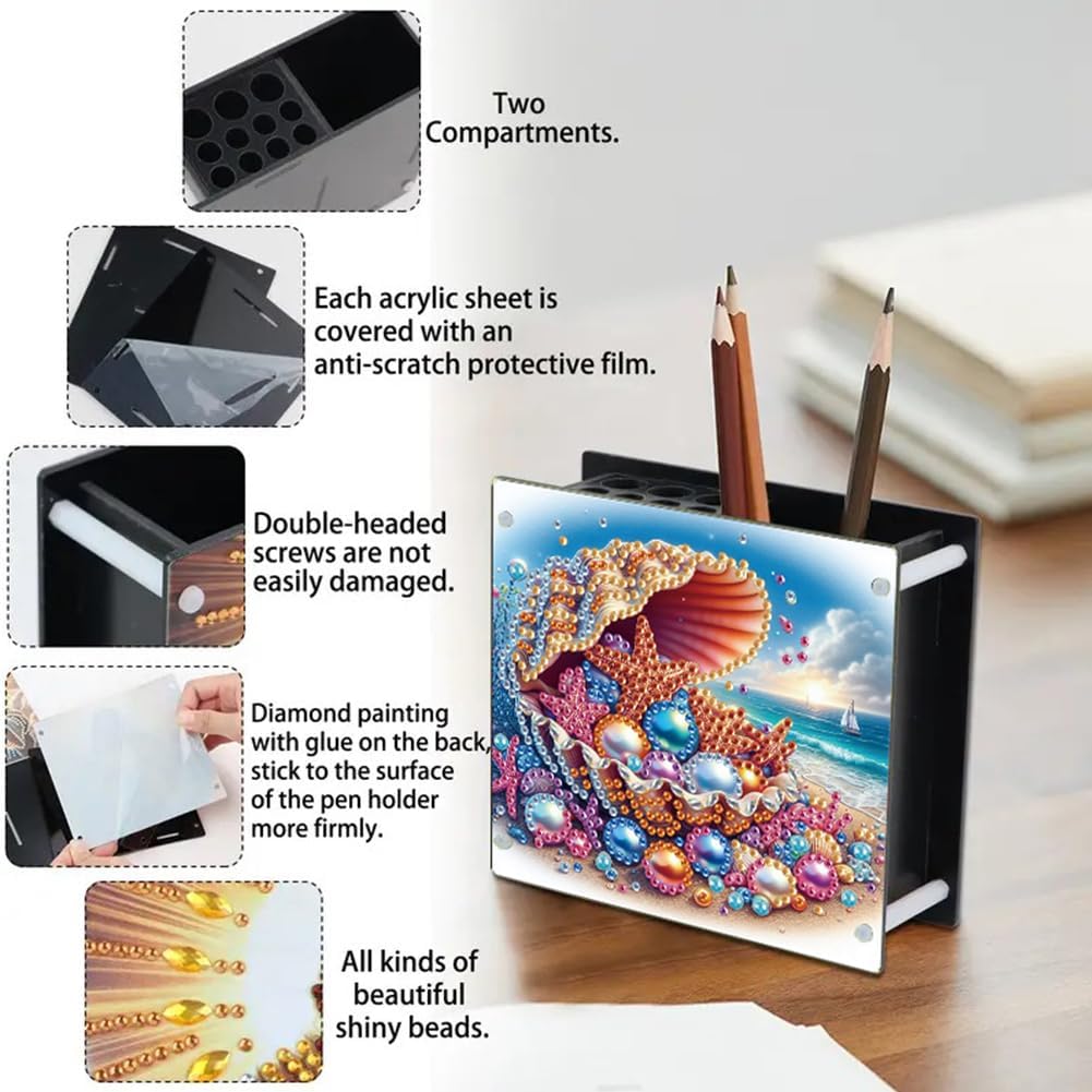 Scelta regalo perfetta: questo ornamento desktop organizzatore di penna rende un regalo premuroso e creativo for amici, colleghi o familiari. Adatto for ogni occasione, combina praticità con un tocco personale, trasmettendo sentimenti sentiti e salutari. Rilassamento e sollievo dallo stress: il processo di creazione di questo kit di penna for pittura diamantata fai-da-te offre un'esperienza calmante e di allenamento da stress. Consente agli utenti di concentrarsi sulla creatività e godere dei benefici terapeutici del fai -da -te, adatti a tutte le età. Soluzione di stoccaggio versatile: oltre a tenere le penne, questo organizzatore di matite di strass ospita forbici, sovrani e persino funziona come un piccolo vaso. Il suo design multifunzionale soddisfa varie esigenze di archiviazione, rendendolo una preziosa aggiunta a qualsiasi scrivania. Materiali di alta qualità: realizzati con materiali ecologici premium, questo kit di supporto for penna for diamanti è sia sicuro che affidabile. Le decorazioni di diamanti sono realizzate in resina vibrante e di alta qualità, garantendo che rimangano luminose e accattivanti nel tempo. Design creativo e pratico: questo supporto a matita di diamante combina funzionalità con un tocco artistico. Non solo organizza penne e articoli di cartoleria, ma i suoi abbellimenti di diamanti frizzanti elevano anche l'estetica della scrivania o 'area di lavoro.