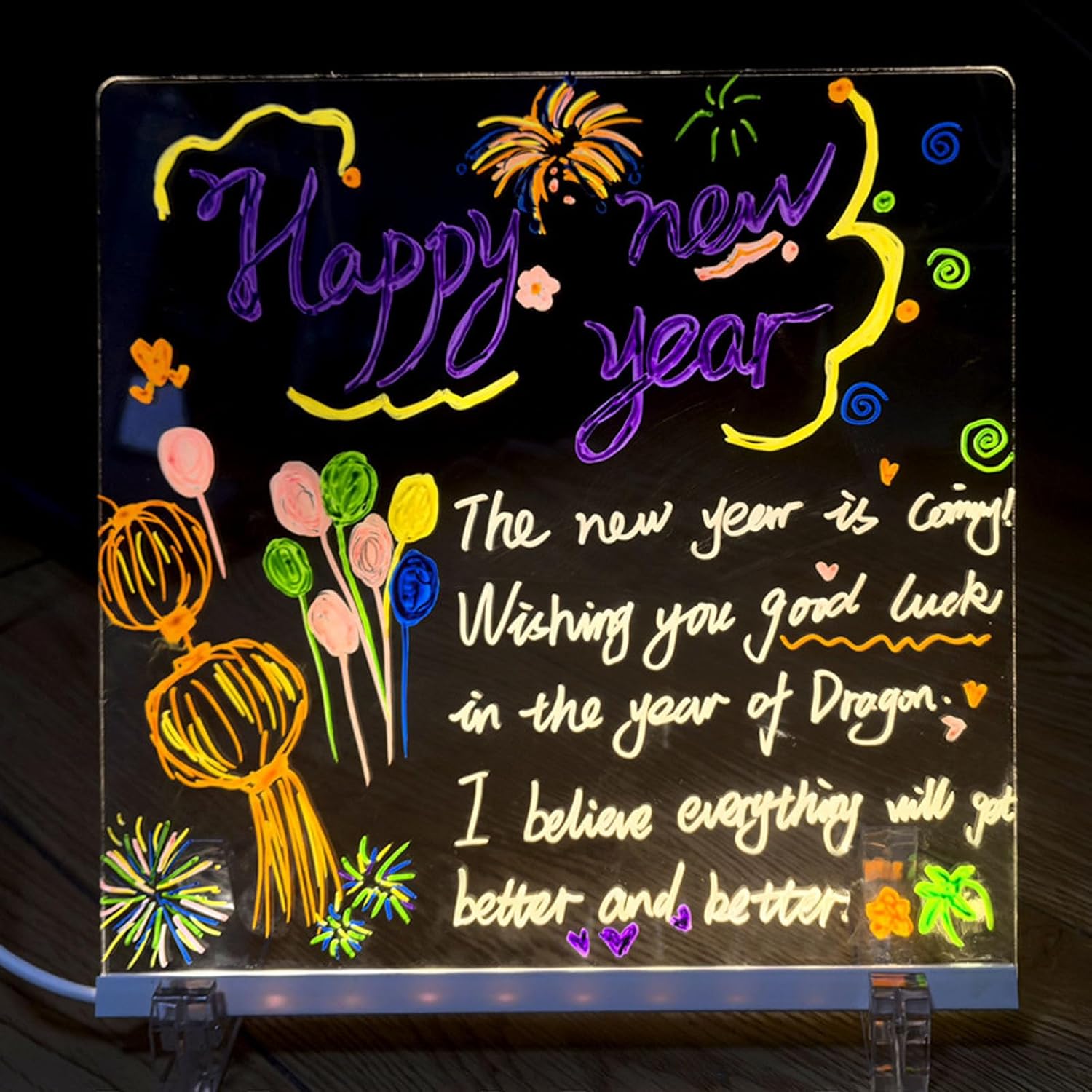 【Glowing Acrylic Canvas】Meet the led drawing board - a magical light up acrylic dry erase board that transforms notes into art! Write to-do lists or doodle masterpieces with the included markers, then watch them glow with soft LED backlighting 【High-quality Materials】Our Led Drawing Board made of highquality acrylic, High light transmittance and clearly visible.there are two layers of film on both sides of the acrylic board. When you use it, you need to tear off the protective film. 【Easy Cleaning】Wipe away notes in seconds! Our led drawing board uses premium coated acrylic that resists scratches and ghosting. Includes microfiber cloth for streak-free erasing every time 【Multiple Applications】You can use acrylic dry erase board with light as a doodling board, drawing board, planning board or memo, and calendar, and it is also a good-looking decoration in your room. Ideal for restaurants, cafes, hotels, retail stores, shopping malls, etc.