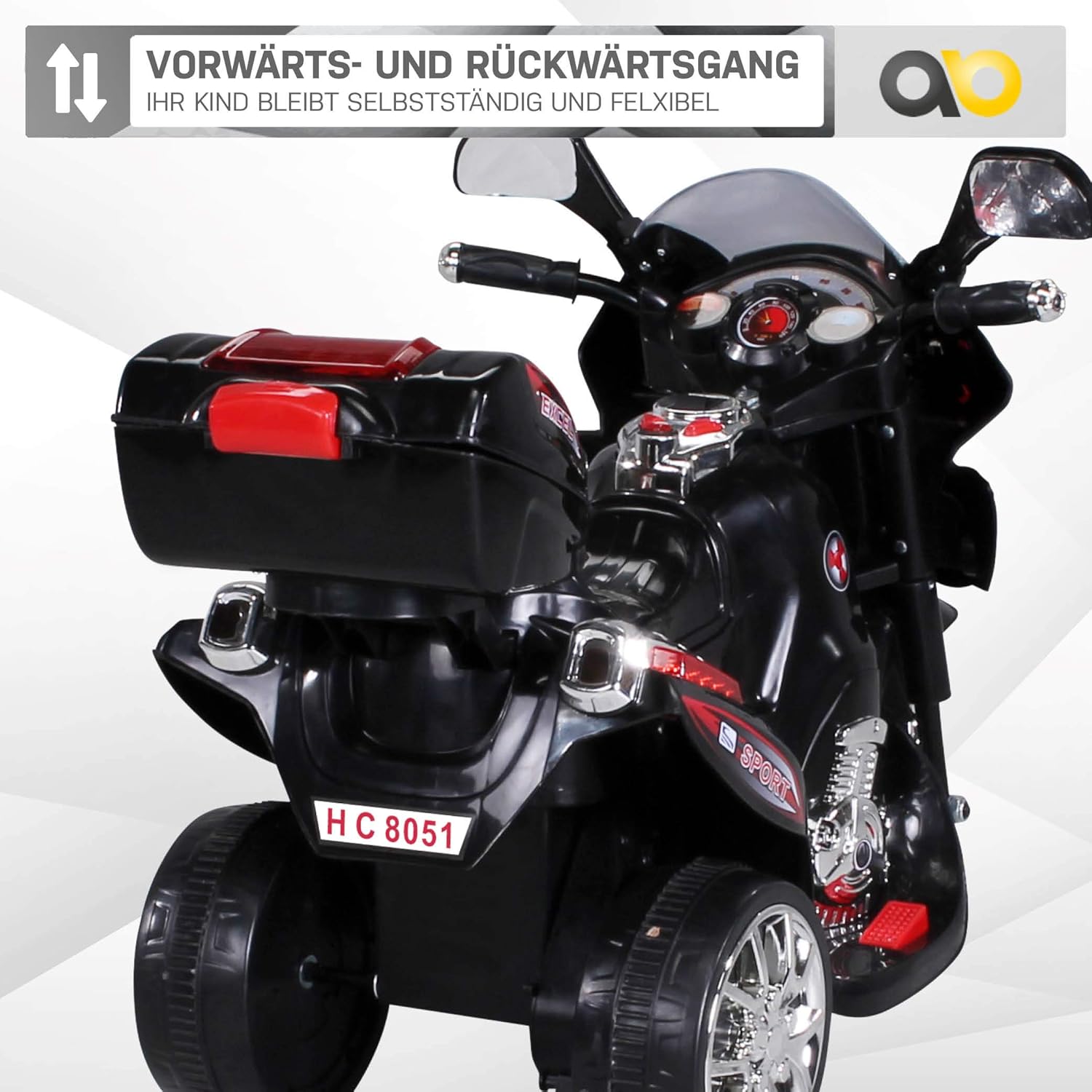 Alte prestazioni 𝐮𝐧𝐝 𝐤𝐢𝐧𝐝𝐠𝐞𝐫𝐞𝐜𝐡𝐭 🚦 Con frenatura automatica, max. Con una velocità di 3 km/h e una capacità di carico di 25 kg, la moto è ideale per bambini dai 3 ai 5 anni: guida sicura con comandi adatti all'età! Alta qualità 𝐮𝐧𝐝 𝐩𝐟𝐥𝐞𝐠𝐞𝐥𝐞𝐢𝐜𝐡𝐭 💪 Gli anelli in gomma morbida sugli pneumatici garantiscono un rotolamento silenzioso, una buona presa e una lunga durata: perfetti per l'uso all'interno e all'esterno! Grandi prestazioni 💨 Il motore da 12 watt con 1 ruota motrice consente un tempo di guida fino a 1,5 ore - ideale per brevi viaggi in giardino o su terreno pianeggiante! 𝐑𝐞𝐚𝐥𝐢𝐬𝐭𝐢𝐬𝐜𝐡𝐜 La retromarcia e il modulo sonoro con 6 effetti regalano ai bambini una vera esperienza di guida con musica, clacson e suoni fantastici! Ottimo rapporto qualità-prezzo 🧳 Con una valigia pieghevole per piccoli tesori e un sedile ergonomico per 1 bambino, la moto offre comfort di guida e spazio di archiviazione in un formato a misura di bambino!