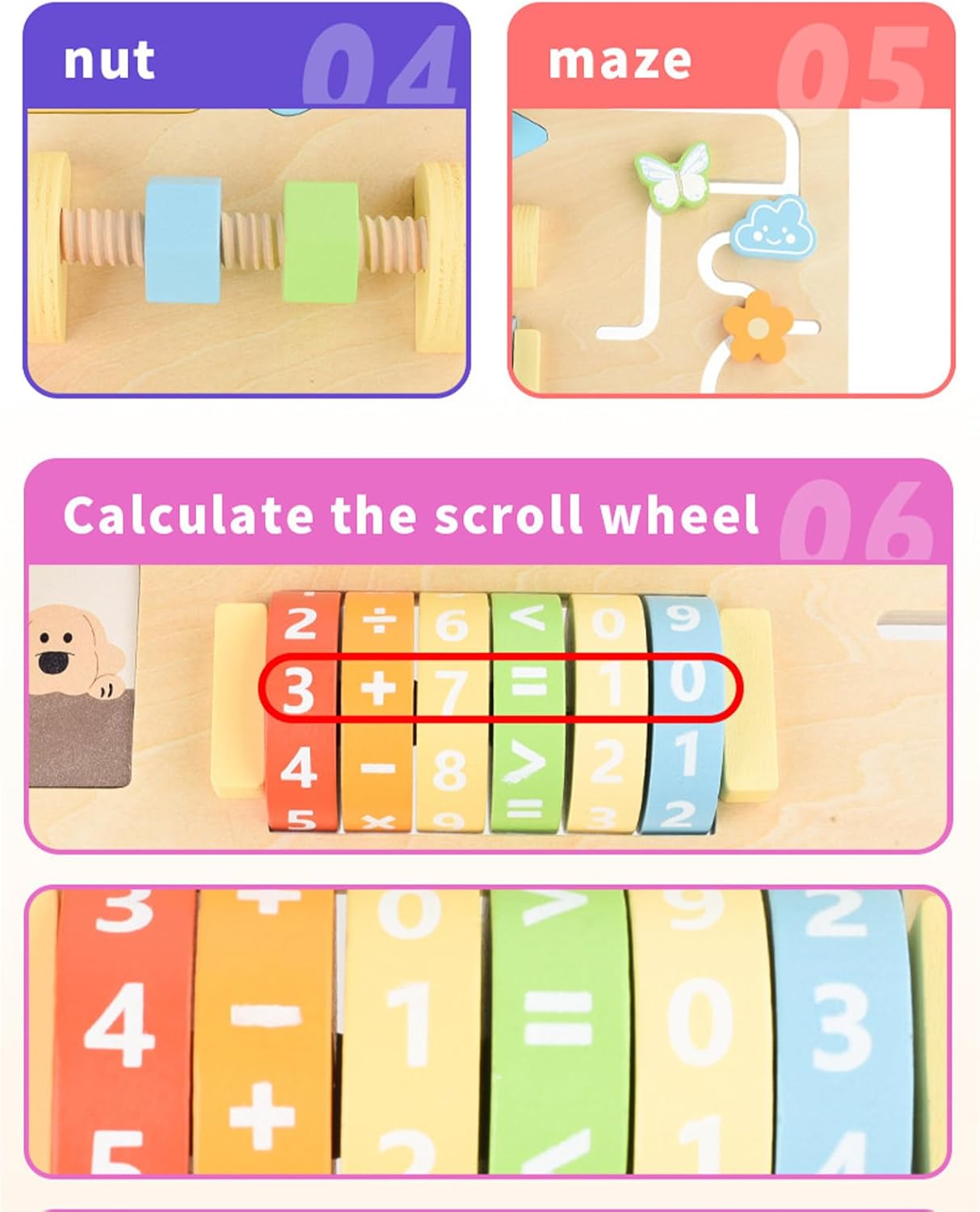 Built For Learning: helps encourage early recognition of shapes colours and spatial reasoning through play supports toddler skill building in preschool daycare or classroom learning setups for small groups Engaging Activity Play: includes multiple interactive tasks like bead maze sorter sliders and turning blocks designed to maintain attention and help develop coordination focus and imagination while playing Compact Desk Format: combines tabletop activities in a small layout that fits in learning areas reading nooks bedrooms or nursery play corners made for young kids who gain from visual and tactile learning Safe For Young Kids: crafted with rounded edges smooth wooden parts and secure attachments allows children to explore safely while seated or standing works well in shared environments or personal spaces Ideal For Sharing: suitable for home classrooms daycare rooms or waiting areas lets children interact next to each other promotes communication cooperative behaviour and early interest in playful problem solving
