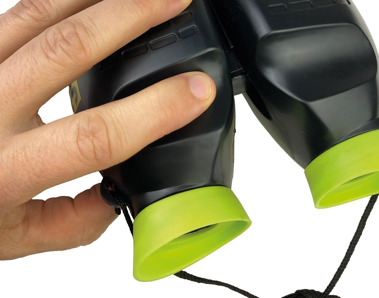 Dimensioni: ca. 12 x 14 x 6 cm Messa a fuoco: 6 x 30 Materiale plastica con rivestimento in gomma Colore: grigio/verde Cavo di sicurezza Dai 4 anni in su Testato SGS