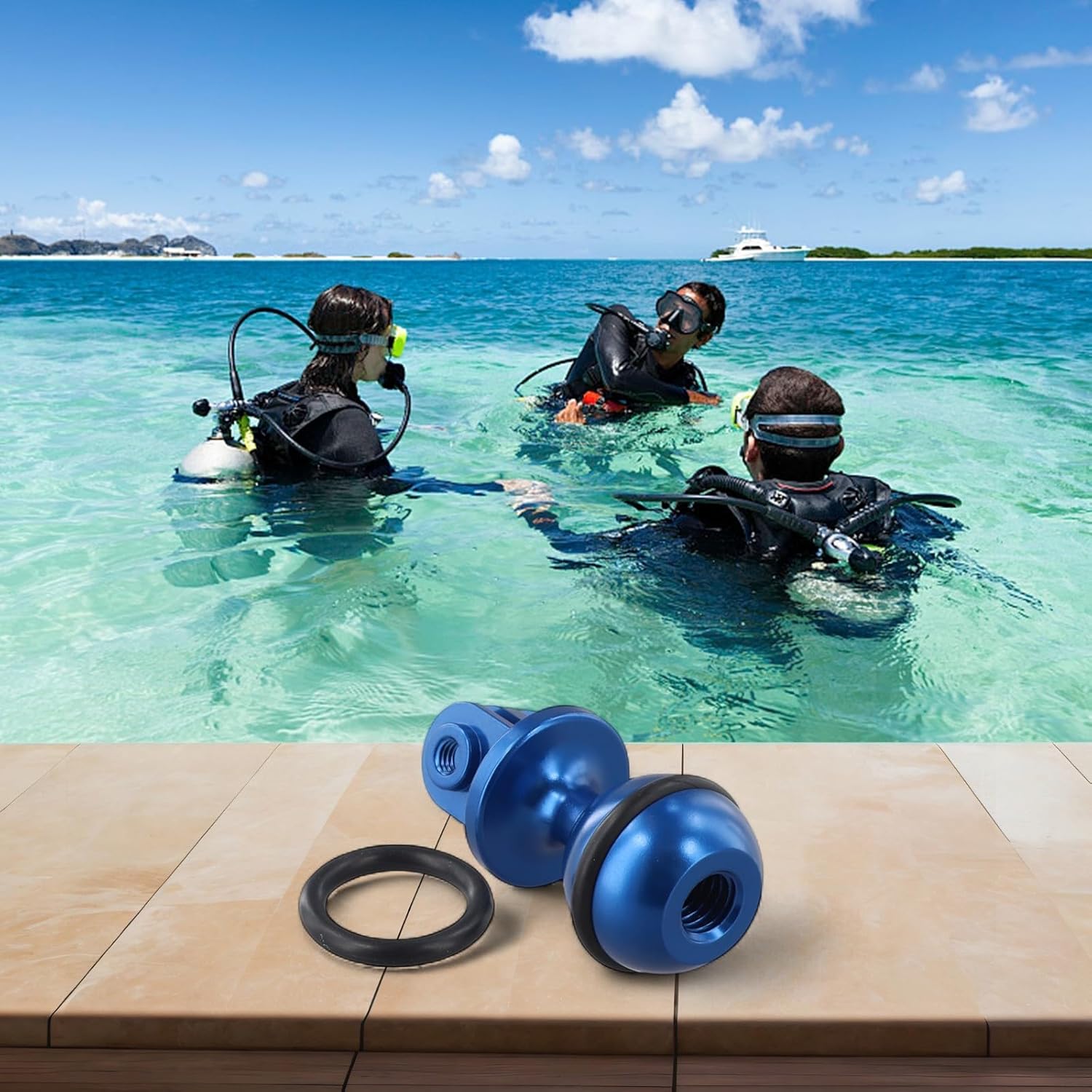 Supporto per fotocamera subacquea: progettato per la fotografia subacquea, questo adattatore a sfera da 2,5 cm si collega saldamente alle action cam, fornendo un supporto stabile per catturare filmati chiari durante le immersioni e le avventure di snorkeling, con struttura in lega di alluminio anodizzato per prestazioni di lunga durata in ambienti di acqua salata Flessibilità del giunto sferico: dotato di un giunto sferico da 2,5 cm, questo adattatore consente una facile regolazione degli angoli della fotocamera, è possibile inquadrare lo scatto perfetto durante lo spostamento, e funziona con manicotti standard a giunto sferico e connettori a doppia presa per opzioni di configurazione versatili Materiale e costruzione: realizzato in lega di alluminio ad alta resistenza utilizzando per la lavorazione CNC, questo adattatore a sfera offre una durata e una resistenza leggere, con anodizzazione esterna per proteggere dall'erosione e mantenere un aspetto elegante nei colori rosso, blu o nero Per una facile installazione: basta collegare questo adattatore alla tua action camera utilizzando il meccanismo a giunto sferico da 2,5 cm e si integra perfettamente con supporti per luci di riempimento o altri accessori, rendendolo veloce da configurare per l'uso immediato in vari scenari di sport acquatici Compatto e portatile: misura 53 x 25 mm, questo adattatore compatto è facile da trasportare nell'attrezzatura subacquea, evitando ingombranti e fornendo un supporto affidabile per la fotocamera, ideale per viaggiatori e appassionati che cercano un supporto affidabile per le riprese subacquee
