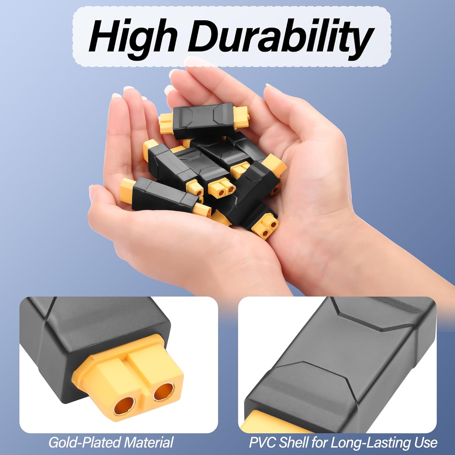 【Adattatore wireless XT60】Connettore 1: XT60 maschio. Connettore 2: XT60 femmina (riceverai 1 paio di connettori XT60, la quantità è appena sufficiente per il tuo utilizzo e sostituzione). 【Facile da usare】 Basta collegare il connettore XT60 alle batterie, ai modelli RC o alle configurazioni di alimentazione fai-da-te per una commutazione immediata e senza interruzioni e prestazioni di carica/scarica rapida. surriscaldamento.