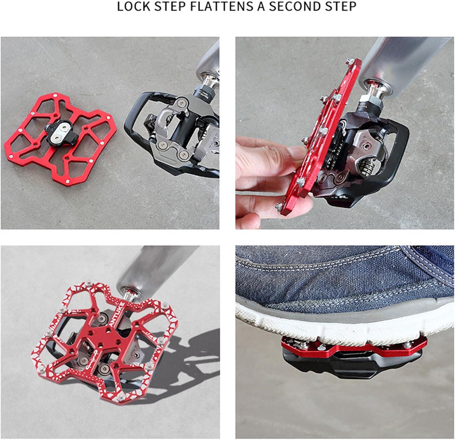 L'adattatore per pedali per biciclette è in lega di alluminio, resistente all'ossidazione e all'usura. Non è facilmente danneggiato e invecchiato L'adattatore per pedaliera senza morsetto è leggero, smontabile e molto da usare. Dimensioni: circa 9 x 9 cm Uso: fibbia i chiodi antiscivolo nell'ampia piattaforma pedale, che può convertire il pedale di sbloccaggio in un pedale piattaforma per un facile ciclismo Accessori per biciclette: l'adattatore per pedali senza morsetto per biciclette può convertire la tua bici da strada o mountain bike in una guida facile, rendendo il ciclismo più facile Ampiamente usato: adatto per pendolarismo, biciclette per il tempo libero, biciclette per bambini, biciclette da strada, mountain bike, biciclette per giovani,