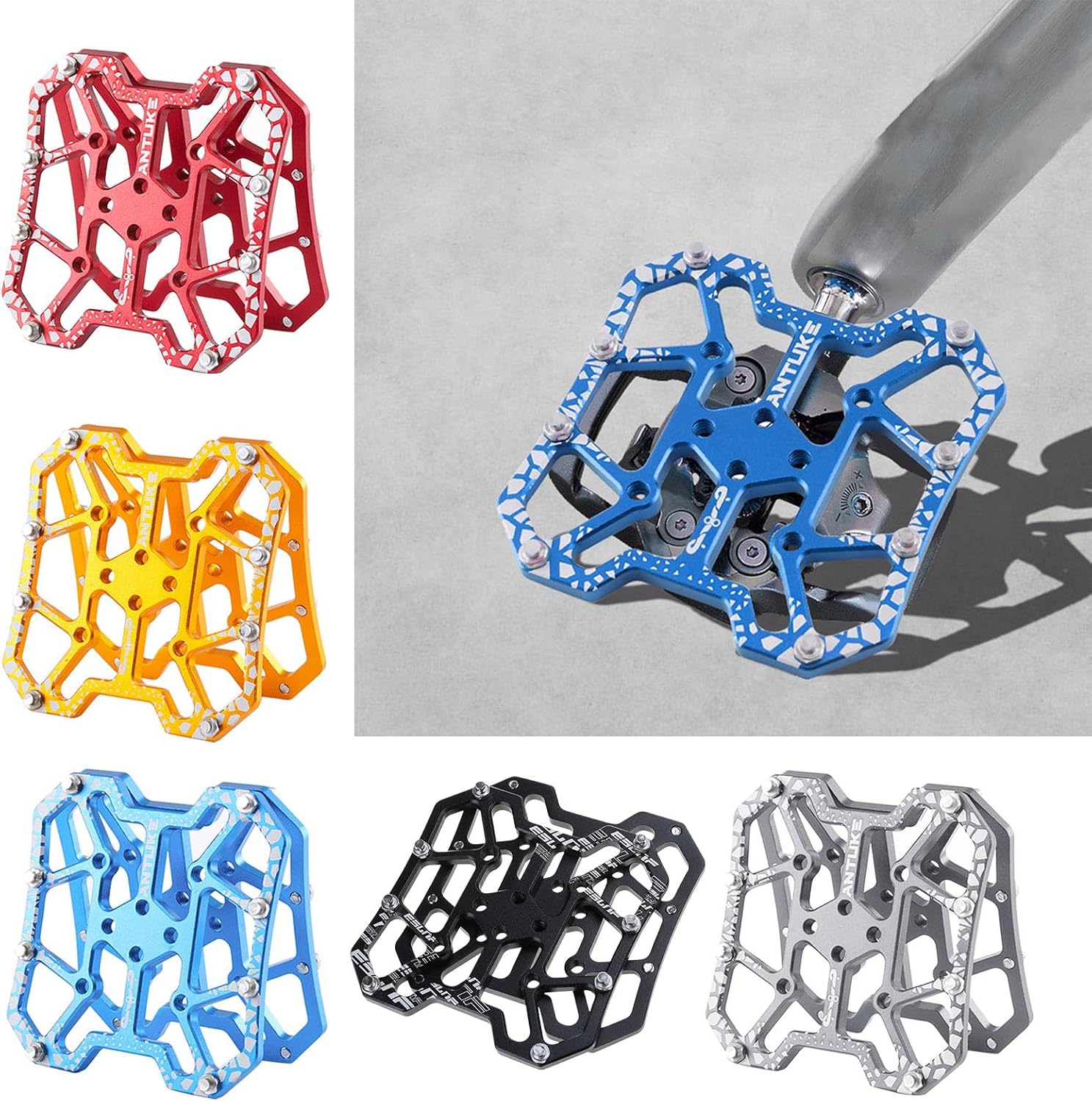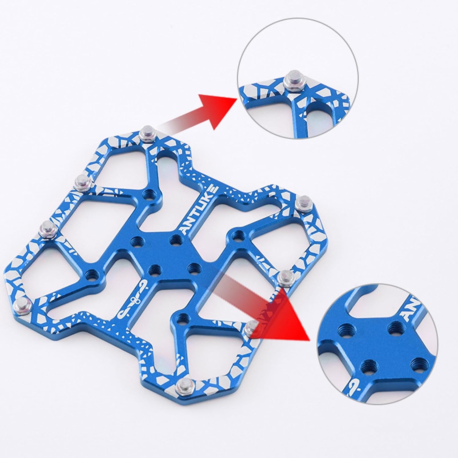 L'adattatore per pedaliera senza morsetto è leggero, smontabile e molto da usare. Dimensioni: circa 9 x 9 cm Uso: fibbia i chiodi antiscivolo nell'ampia piattaforma pedale, che può convertire il pedale di sbloccaggio in un pedale piattaforma per un facile ciclismo L'adattatore per pedali per biciclette è in lega di alluminio, resistente all'ossidazione e all'usura. Non è facilmente danneggiato e invecchiato Ampiamente usato: adatto per pendolarismo, biciclette per il tempo libero, biciclette per bambini, biciclette da strada, mountain bike, biciclette per giovani, Accessori per biciclette: l'adattatore per pedali senza morsetto per biciclette può convertire la tua bici da strada o mountain bike in una guida facile, rendendo il ciclismo più facile
