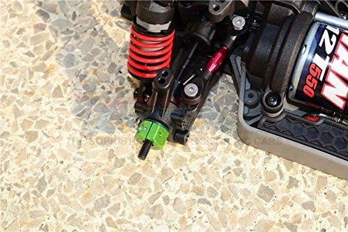 Nome prodotto: adattatori esagonali in alluminio spessore 9 mm - set da 4 pezzi Realizzati in materiale di alluminio 6061T6 di alta qualità con design anti-allentamento per garantire che l'esagono e l'asse siano saldamente collegati. Spessore del disco freno originale: 6,8 mm. Spessore di questo esagono: 9 mm. Accessori inclusi: Perno in acciaio 2x10 - 4 pezzi; Vite a testa cilindrica in acciaio inossidabile 2x5 - 4 pezzi. Codice articolo originale: 8356. Compatibile: 1/10 Traxxas GT 4-Tec 2.0 Supercar 83056-4, 4-Tec 3.0 Corvette StinGrey 93054-4