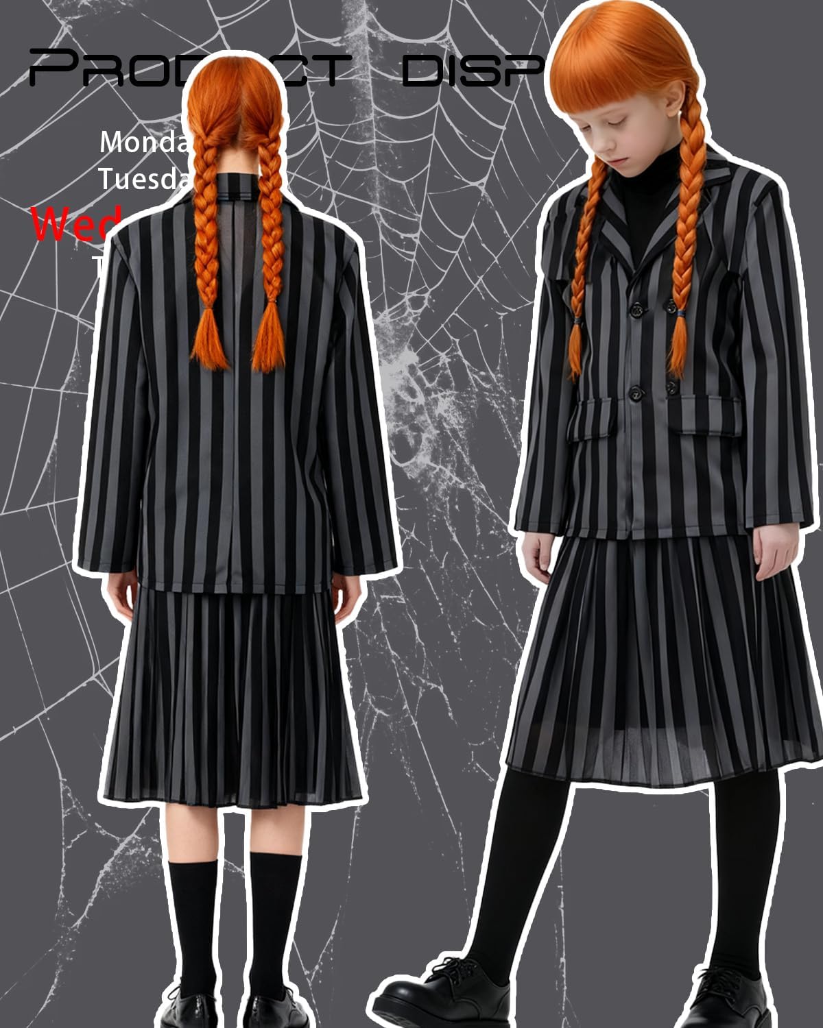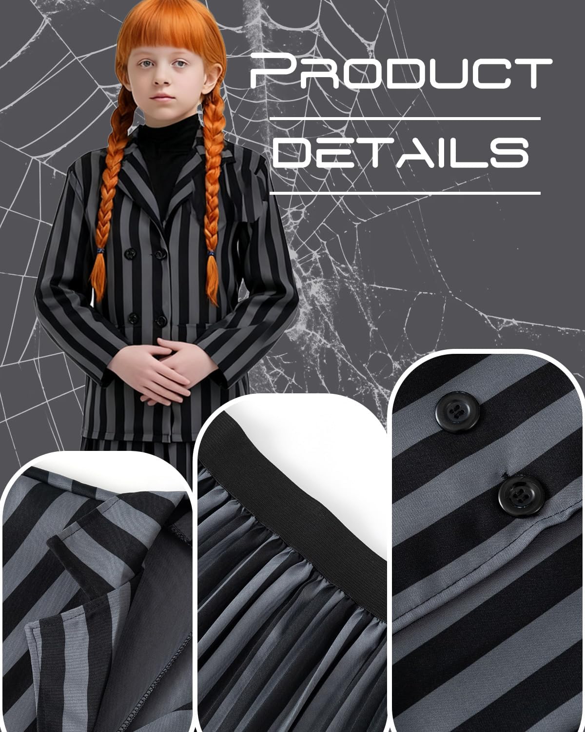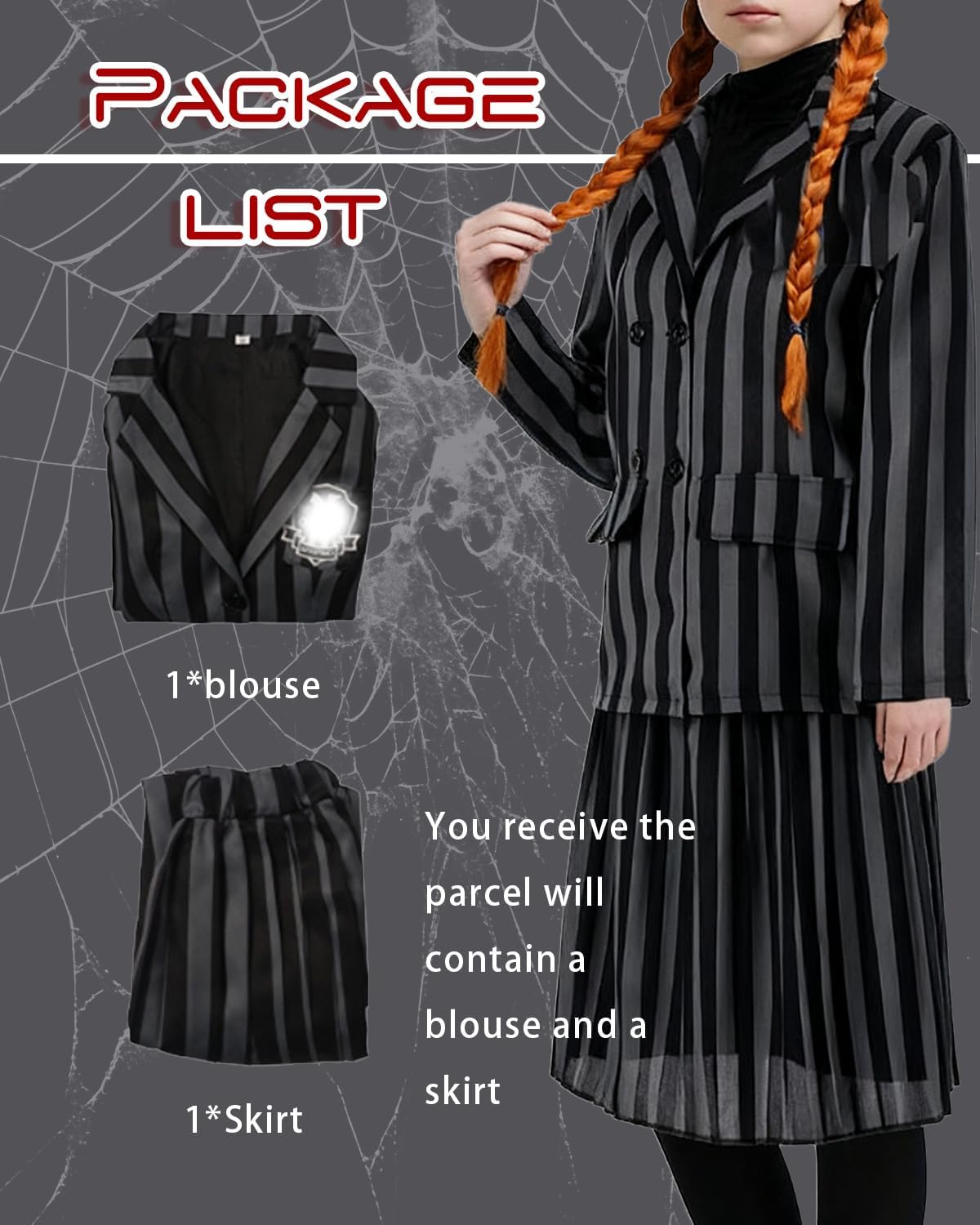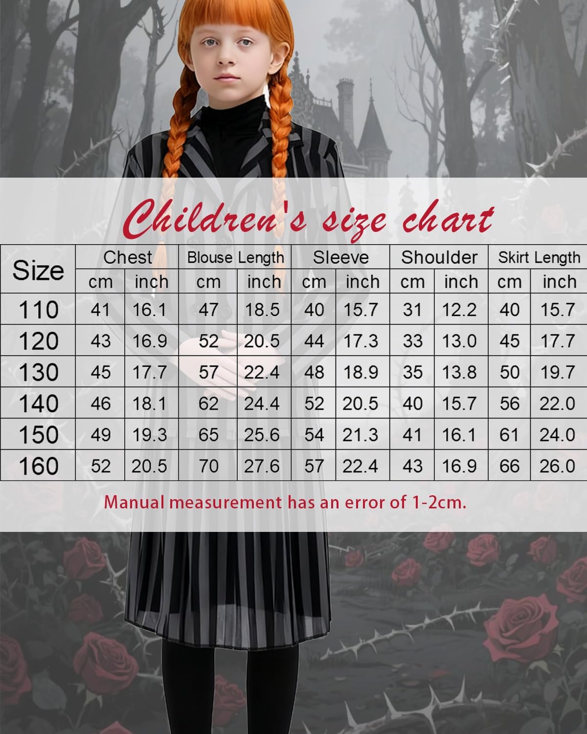 Benvenuti nel negozio Jackolume Costume da donna per ragazze, uniforme scolastica, gonna a pieghe, a righe, set di abiti per feste di Halloween, costume di Halloween per ragazze, vestito a righe nere e grigie, set di Halloween con gonna superiore, capispalla con parrucca, costume di Halloween per ragazze cosplay uniforme scolastica vestito per bambini nero vestito da festa cosplay, sarà un regalo speciale di Natale o Halloween per i tuoi bambini Tabella delle taglie. Abito nero 110: petto 41 cm, spalle 31 cm, lunghezza gonna 40 cm. 120: petto 43 cm, spalla 33 cm, lunghezza gonna 45 cm. 130: petto 45 cm, spalla 35 cm, lunghezza gonna 50 cm. 140: petto 46 cm, spalla 40 cm, lunghezza gonna 56 cm. 150: petto 49 cm, spalle 41 cm, lunghezza gonna 61 cm. 160: petto 52 cm, spalle 43 cm, lunghezza gonna 66 cm. Materiale: poliestere. Dimensioni: 1O0-160 cm. Stile: come da immagine. La confezione include: 1 top; 1 gonna. Precauzioni: 1. Potrebbe esserci un margine di errore di 1-3 cm dovuto alla misurazione manuale. 2. A causa dei diversi monitor e degli effetti della luce, il colore reale potrebbe essere leggermente diverso da quello dell'immagine. 3. Le taglie asiatiche sono più piccole rispetto alle taglie europee/US/UK, si prega di confrontare le misure dettagliate prima dell'acquisto