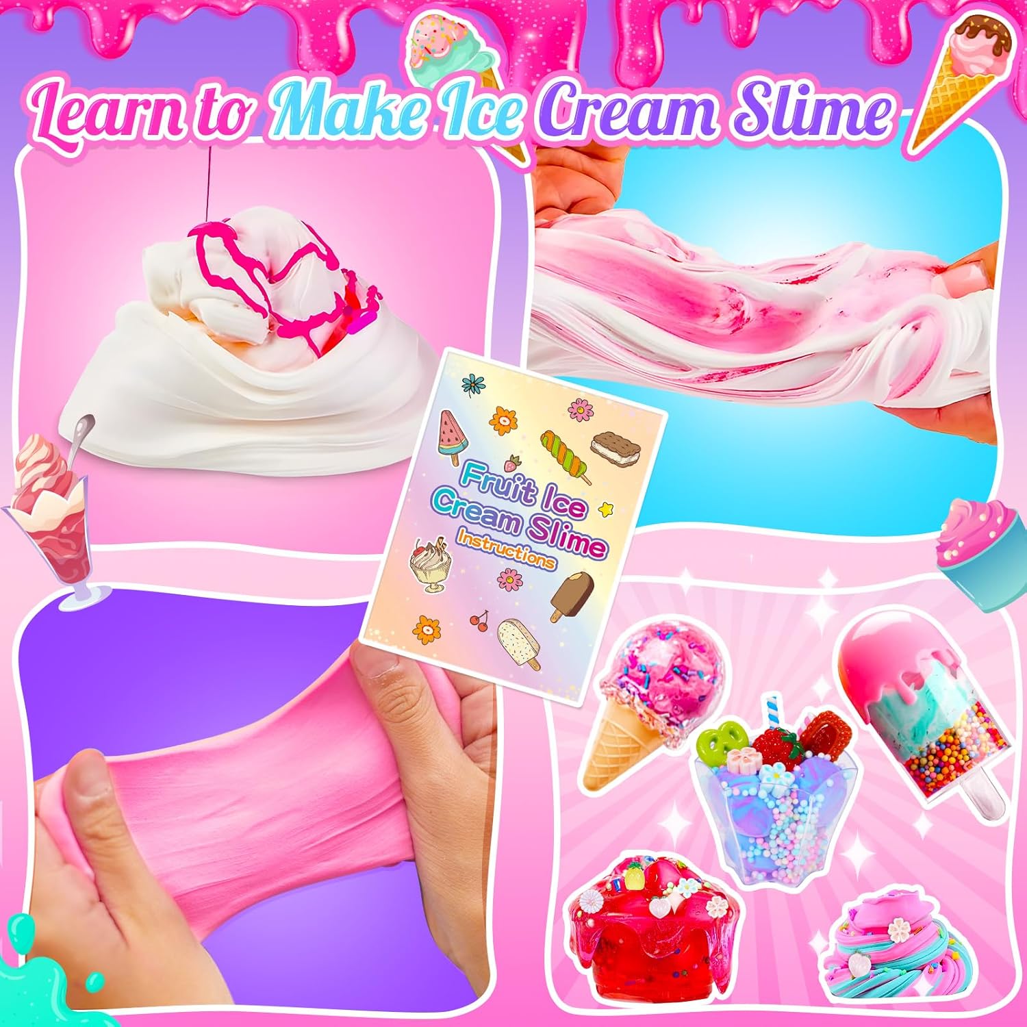 【Slime di Gelato al Burro Fai-da-te】Realizzate tutti gli slime che riuscite a immaginare con questo kit completo per la creazione di slime. Create slime alla frutta, slime ai frutti di bosco, slime alla torta, slime alla ciambella, slime alle caramelle, slime al gelato e slime al burro. I bambini potranno divertirsi per ore con la creazione di prodotti finiti 【Alta Qualità】Realizzato con materiali di prima qualità, questo slime è morbidissimo, antiaderente e facile da pulire. Spremere, impastare, arrotolare, piegare e allungare lo slime per un divertimento senza fine 【Giocattoli Alla Frutta con Panna Ghiacciata】Divertiti con lo slime! Crea lo slime più gustoso con i tuoi colori e profumi preferiti. Conservate lo slime in simpatici coni da gelato o contenitori per ghiaccioli e completate il tutto con zuccherini e fragole 【Migliorare le Abilità dei Bambini】Promuovete la creatività e l'immaginazione creando stili unici di bava di burro. Mescolate colori e decorazioni diverse per migliorare la coordinazione dei colori e le abilità manuali. Intrattiene i bambini per ore e fa vivere loro un'esperienza meravigliosa 【Regali Perfetti per i Bambini】Il set di slime può essere regalato ai bambini come regalo di Pasqua, Halloween, Natale o compleanno. Il set di melma diventerà un giocattolo antistress per i bambini. Allo stesso tempo, può anche stimolare l'immaginazione dei bambini a creare forme di melma più interessanti, portando ai bambini un divertimento senza fine 【Coni e Bastoncini per Gelato e Coppette a Forma di Fiore】Mettete la frutta/dessert nel vostro fantastico slime e conservateli in simpatici coni e bastoncini da gelato e coppette a forma di fiore. Realizza i tuoi lavoretti preferiti a tema frutta/dessert 【Centinaia di Possibilità di Slime Alla Frutta/Dessert】Realizzate una varietà di slime divertenti come slime alla frutta, slime ai frutti di bosco, slime alla torta, slime alla ciambella, slime alle caramelle, slime al gelato e slime al burro. Inoltre, l'aggiunta di argilla conferisce allo slime più colori. Centinaia di possibili combinazioni di slime sono tutte da scoprire