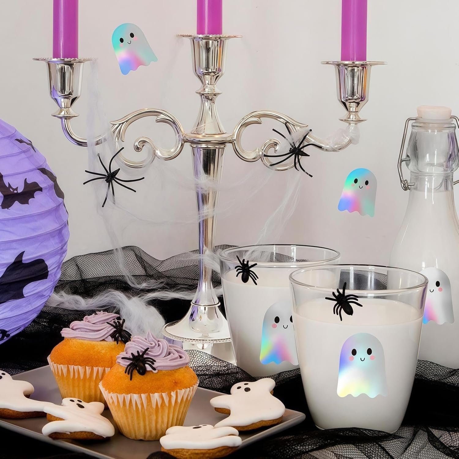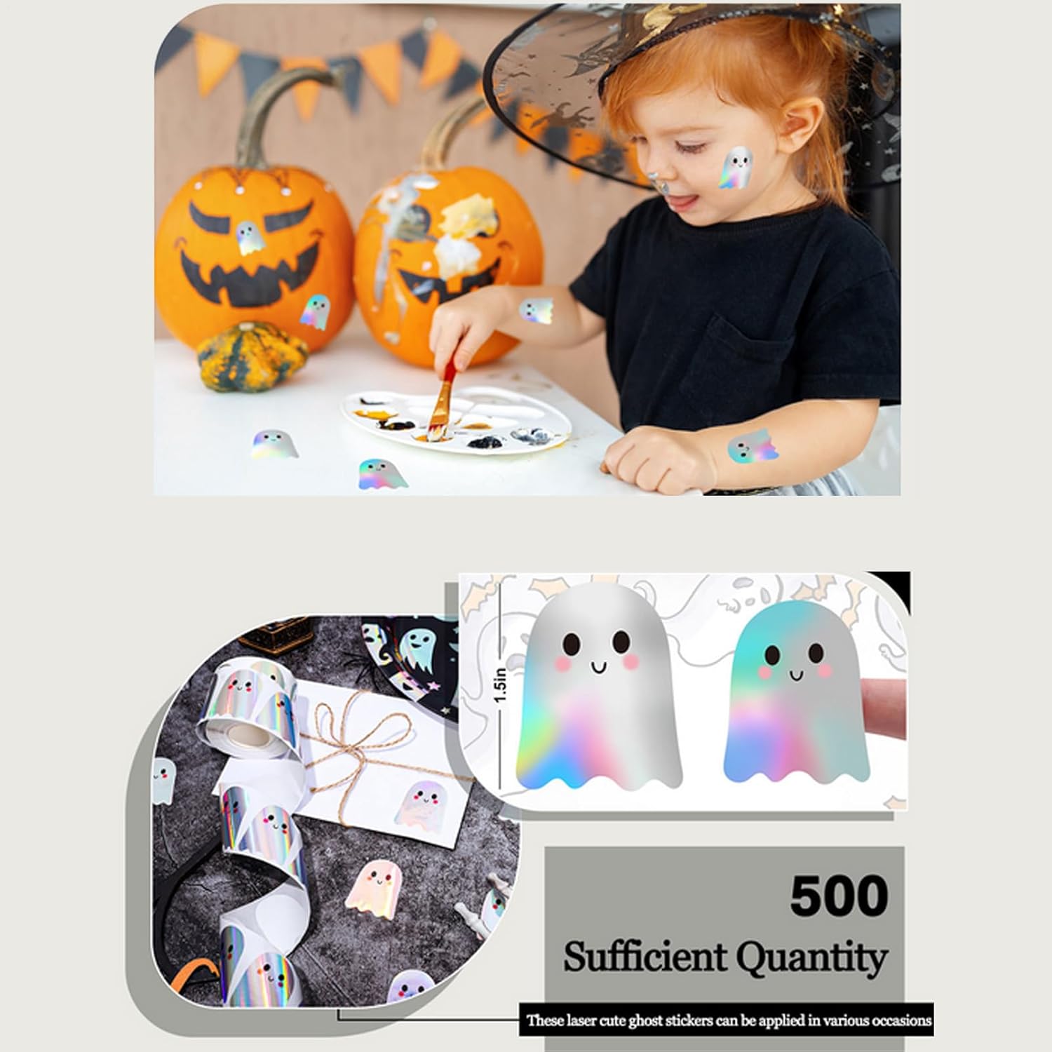 Graziosi ornamenti di Halloween: porta divertimento alle feste con effetti di luce scintillanti e dinamici e stravaganti adesivi a tema fantasma progettati per decorazioni allegre Versatile decorazione spettrale: progettata per durare, con adesivi in PET impermeabili e resistenti agli strappi che mantengono i colori inalterati nel tempo e consentono una rimozione senza sforzo e senza residui quando riposizionati o rimossi. Goditi una decorazione facile con adesivi stacca-e-incolla con installazione rapida, adesione riposizionabile e compatibilità su più superfici Decorazione versatile di Halloween: questi adesivi di Halloween sono per decorazioni di feste, progetti di album, personalizzazione di regali e accenti domestici sono progettati e offrono un modo speciale per illuminare la stagione