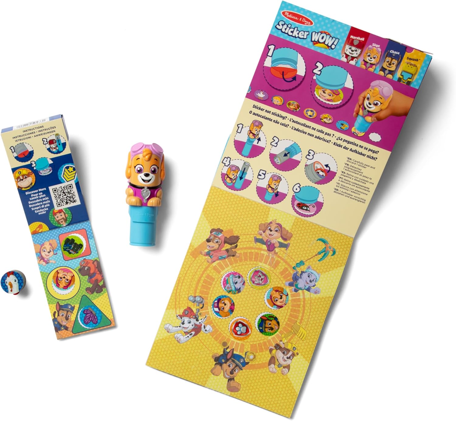 Adesivo Melissa e Doug WOW! è un modo completamente nuovo di giocare con gli adesivi: usa il simpatico personaggio da collezione per timbrare gli adesivi di Paw Patrol sul blocco attività Skye Puppy da 24 pagine, sul mini blocco attività aggiuntivo da 24 pagine e su altri progetti artistici creativi. La confezione include adesivi WOW! Timbro adesivo da collezione Skye Paw Patrol Puppy con 300 adesivi facili da rimuovere (100 design unici Paw Patrol), blocco attività da 24 pagine, 200 adesivi di ricarica aggiuntivi (500 adesivi in totale) e un mini blocco attività aggiuntivo da 24 pagine. Divertenti attività di stampa e apprendimento includono numeri, conteggio, abbinamento, ricerca e trova e altro ancora; Gli adesivi non sono riutilizzabili ma sono facili da rimuovere quando necessario. Il formato in movimento con spazio di archiviazione integrato per timbri adesivi e adesivi facili da rimuovere rendono gli adesivi WOW! Un'attività di viaggio fantastica e pulita, uno strumento artigianale, un gadget per giochi fidget e un giocattolo da collezione tutto in uno; brevetto in attesa