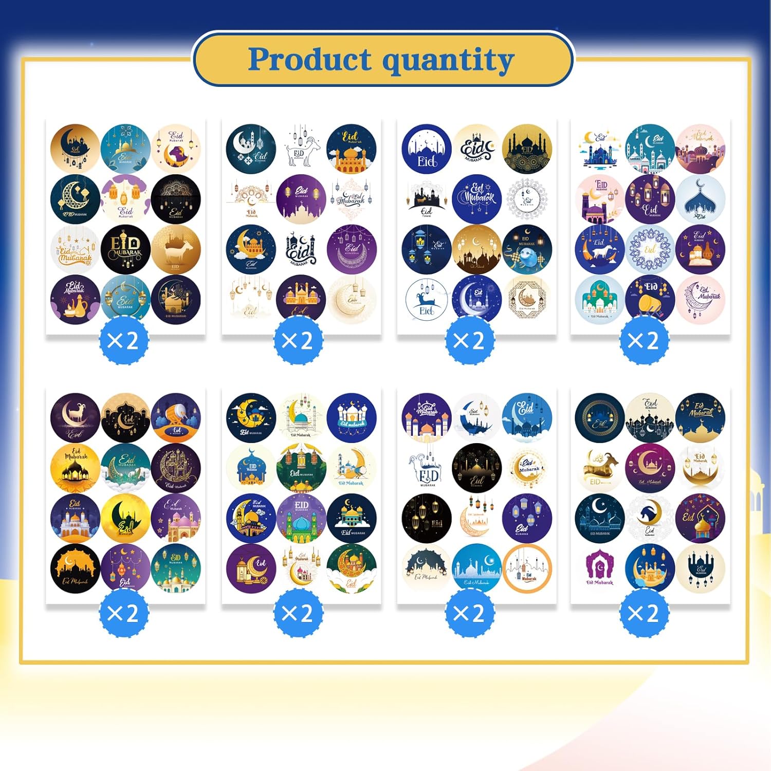 Adesivi Eid Mubarak: inclusi 16 fogli di adesivi Eid Mubarak, 8 tipi, 192 pezzi in totale. Che ha un diametro di 1,5 pollici/3,8 cm. Ogni foglio di adesivi misura 13 x 18 cm. Motivi squisiti: questi adesivi per festival musulmani sono disegnati con motivi a forma di luna e stelle e lettere Eid Mubarak. Questi squisiti adesivi sono pieni di atmosfera festiva e perfetti per Eid Mubarak. Materiale di alta qualità: gli adesivi Eid sono realizzati in carta patinata di alta qualità con pellicola sulla superficie e colori brillanti, autoadesivi, ben fatti e non tossici. Facile da usare: perfetto per sigillare buste, confezioni di dolci, ecc. Facile da montare e smontare, molto decorativo e perfetto per questa occasione, ottimo regalo per Ramadan Mubarak. Divertente favore per la festa: aggiungi adesivi per bambini ai sacchetti regalo per la festa del Ramadan Eid Mubarak. Ogni foglio è perfetto da distribuire come bomboniera o da utilizzare come vincitori per i giochi da tavolo.