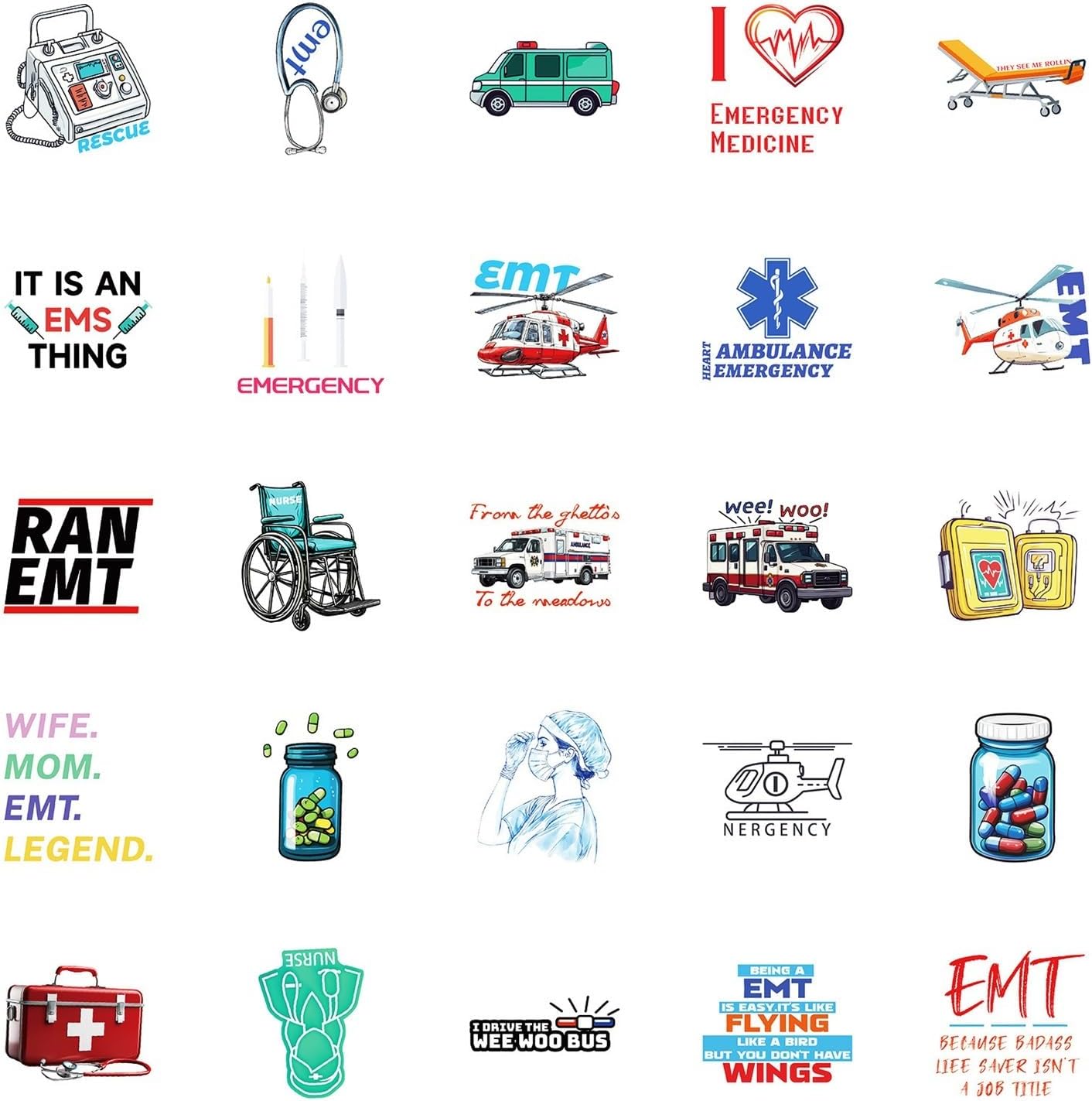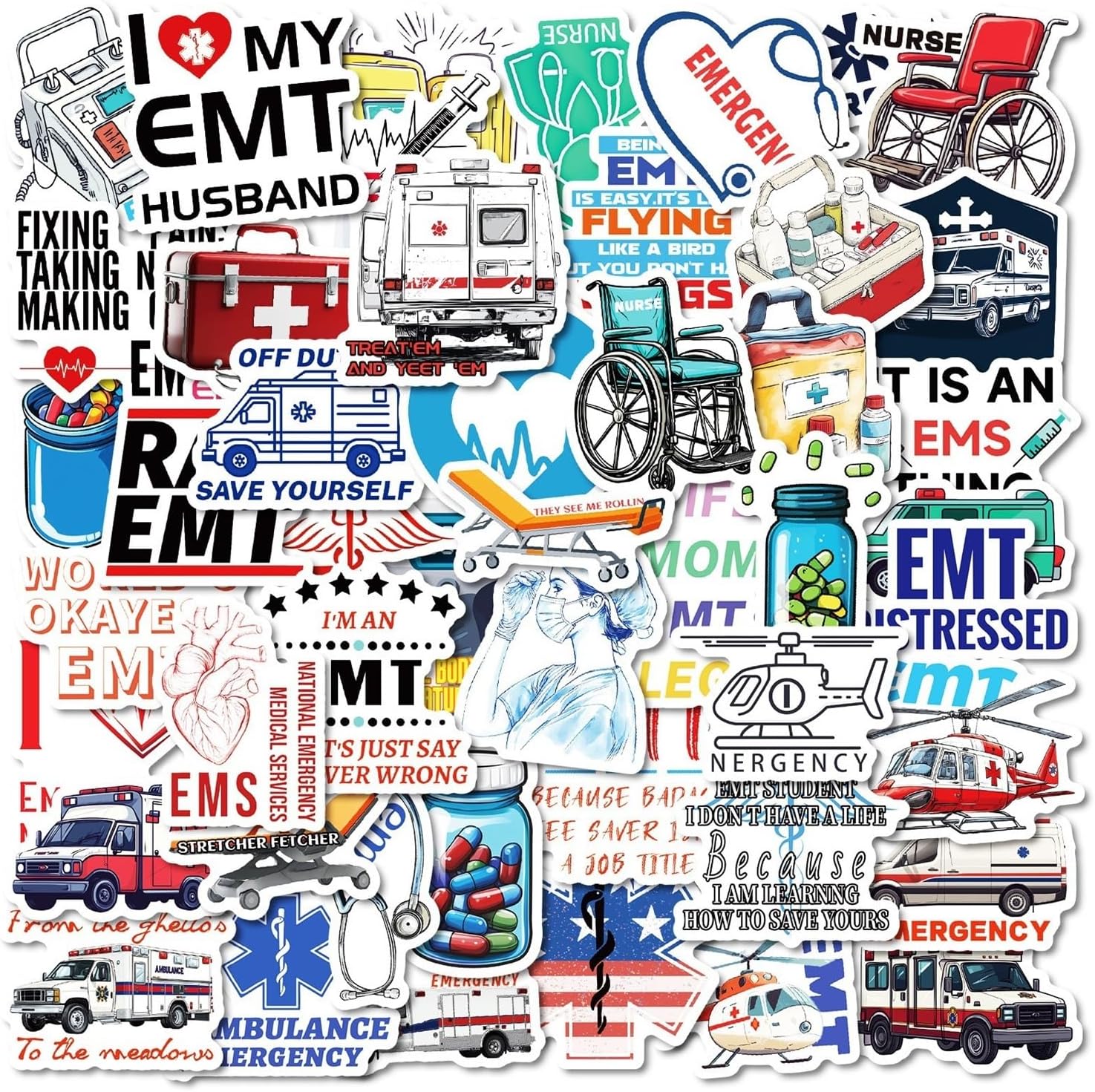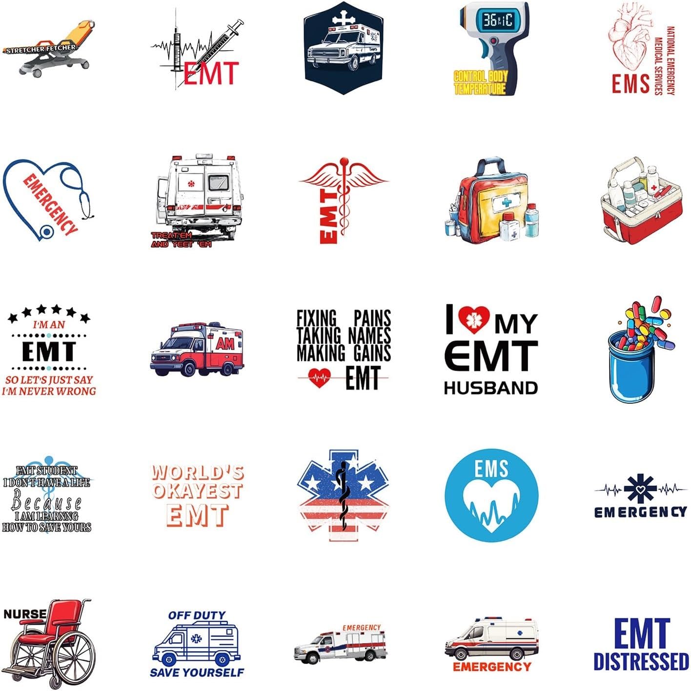 Adesivi in vinile di emergenza 50 pezzi Adesivi impermeabili informativi per laptop Bottiglia d'acqua Valigia Skateboard Diario per adulti