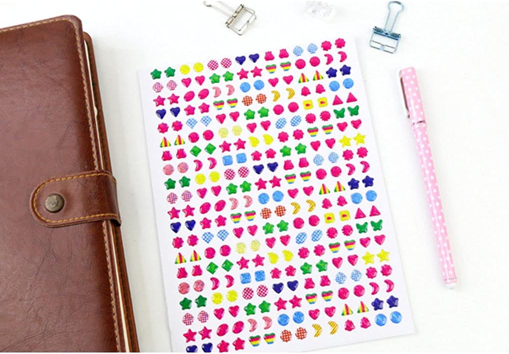 Design speciale: design con cristalli colorati scintillanti realistici con diverse forme adatte come accessori, che lo rende anche con grande stimolazione per i bambini a fare il loro esercizio per abilità creative e manuali. Qualificazione qualificata ambientale e resistenza all'usura della carta e riutilizzabile per lungo tempo Design squisito: con tecnologia di taglio facile da strappare, si toglie facilmente senza tagliare extra, accettabile anche per il riutilizzo su altri esterni. Divertimento per bambini: autoadesivo, può essere incollato direttamente sul libro o all'esterno liscio, godetevi la lavorazione dei bambini per il divertimento educativo precoce nell'insegnamento, anche per ragazze adorabili orecchini. per bambini e ragazze: i migliori bambini e ragazze, adatti per forniture di compleanno prescolare, forniture didattiche o decorazione della stanza dei bambini.