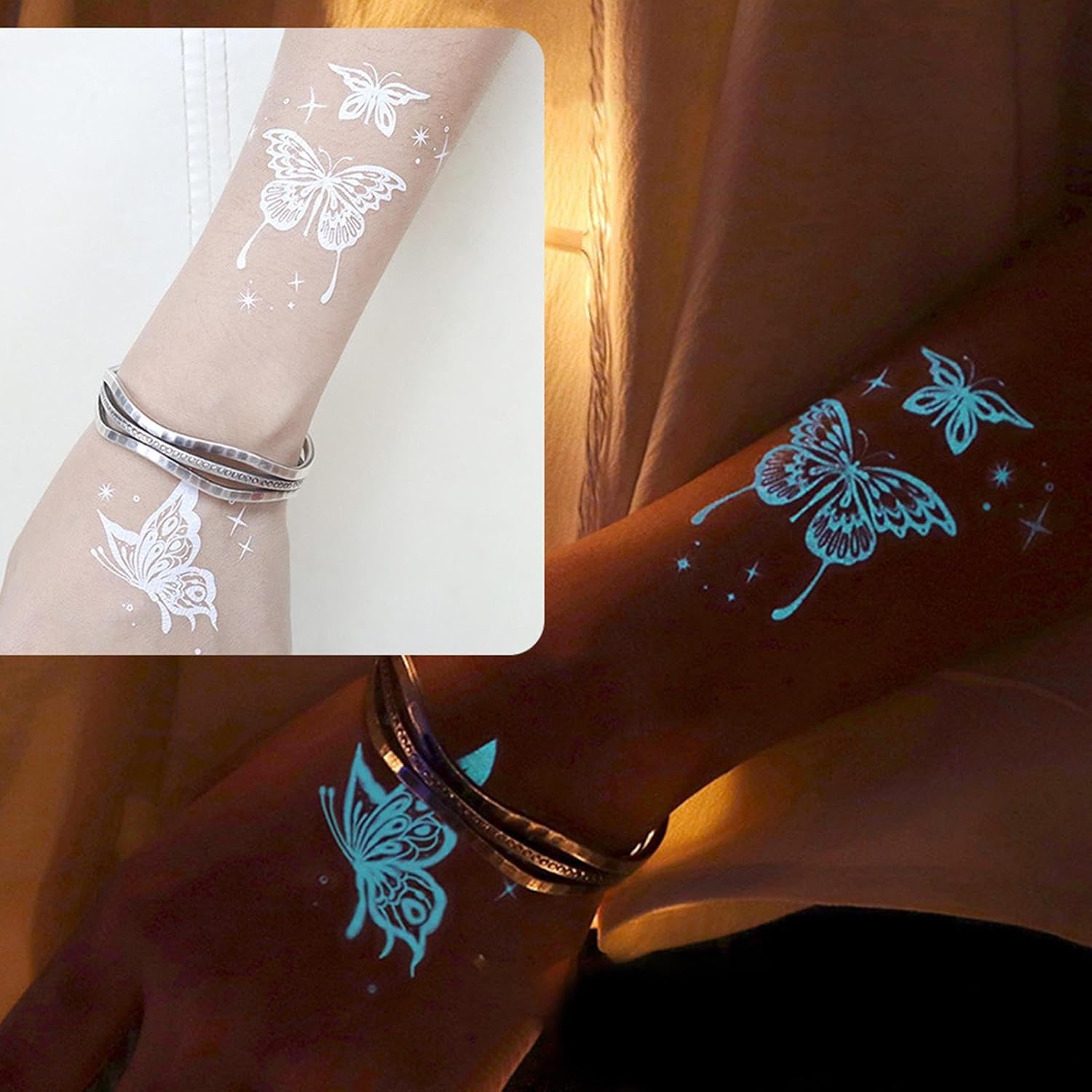 Adesivi luminosi interattivi: aumenta la creatività con body art impermeabile per attività di gruppo. Questi adesivi unici per feste creano momenti interattivi ed esperienze indimenticabili ad ogni celebrazione Glow Party Essentials: illumina la tua pelle con adesivi Glow reattivi UV. Perfetto per body art fluorescente a feste o eventi. Visibilità intensa sotto illuminazione nera. Collezione Body Art creativa: evidenzia il tuo stile con adesivi alla moda per arte della pelle, questa collezione versatile offre motivi personalizzabili che rispecchiano le tendenze contemporanee e la creatività Utilizzabile più volte: questi adesivi luminosi offrono grandi possibilità per espressione creativa. Funzionano come un accattivante body art festival, decorazione versatile per strumenti e adesivi affidabili per molte superfici in qualsiasi ambiente. Pratica maneggevolezza: decalcomanie legate all'acqua per un effetto di colore intenso. Questa arte temporanea della pelle aderisce in modo affidabile e può essere rimossa senza lasciare residui. Semplice cambio dei motivi con un comfort costante sulla pelle.