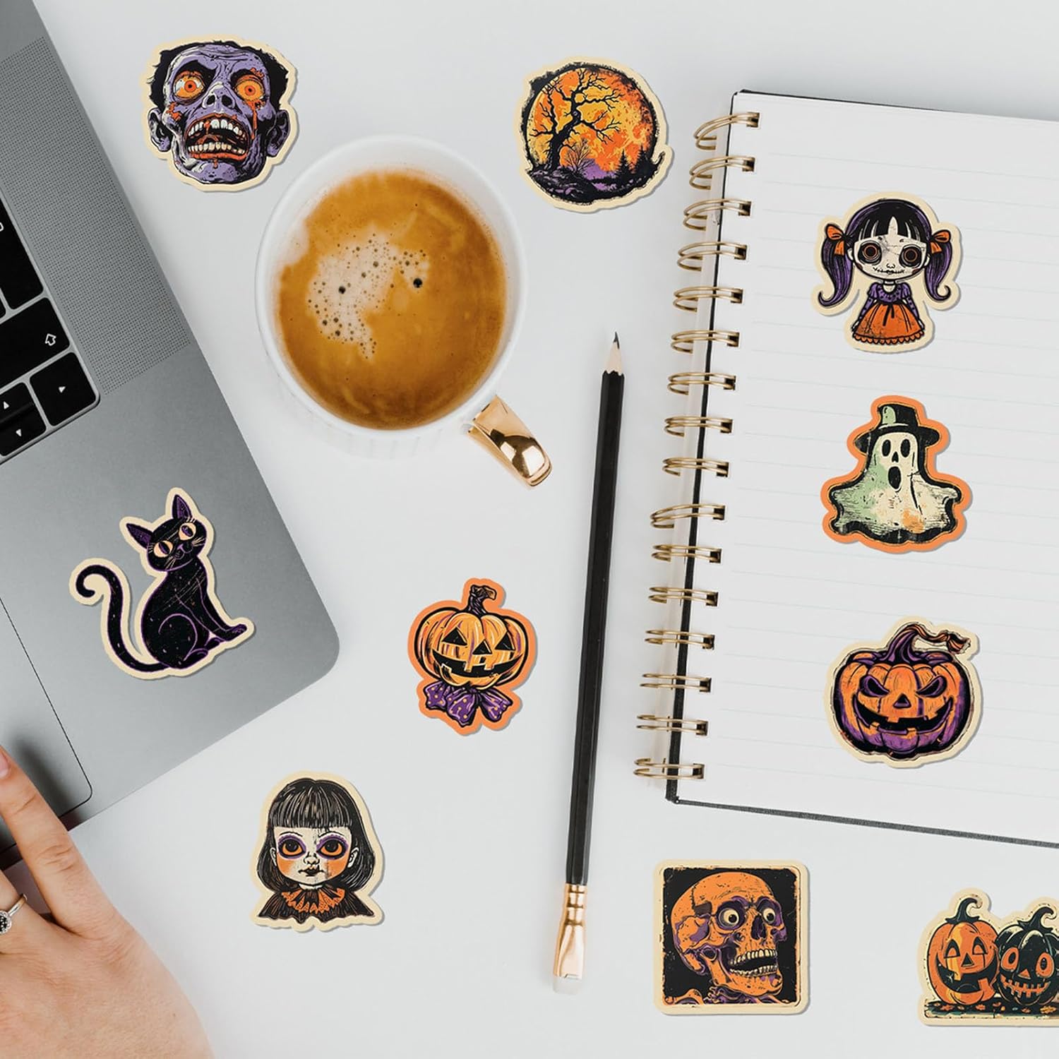 Ampia varietà: include 100 adesivi per Halloween in coordinati design e dimensioni perfette per decorare laptops phones journals luggage water bottles walls doors and school supplies for spooky seasonal Materiale impermeabile: realizzato in vinile in PVC con impermeabili e antigraffio e resistenti ai graffi e alle intemperie anche quando esposto a spills rain o outdoor condizioni rendono ideali per entrambi interni ed esterni Easy Application: Features self-adhesive backing that sticks smoothly to most flat surfaces without leaving upon removal allowing Kids and adults to decorate and redecorate freely without damaging personal items or furniture Kid Friendly: materiale non eco-friendly sicuro per bambini per gestire questi adesivi novelty perfect as party favors classroom rewards trick‑or‑treat giveaways or craft activities during Halloween season celebrations Multipurpose Use: Perfect for customizing electronics travel gear notebooks party décor scrapbooking and seasonal crafts adding personality and a spooky touch to any while letting users mix and match scheleton design creatively