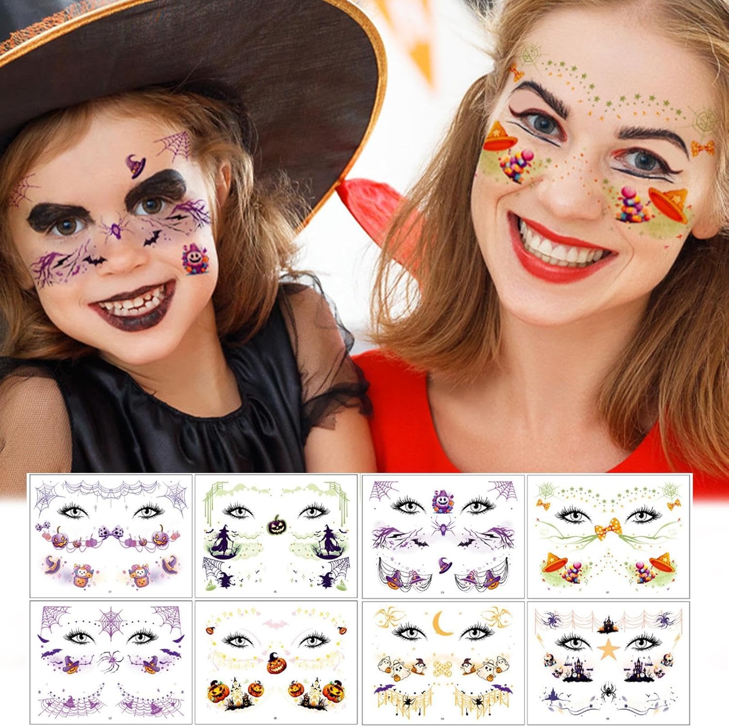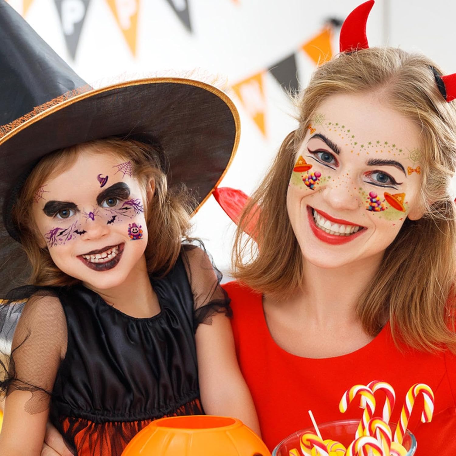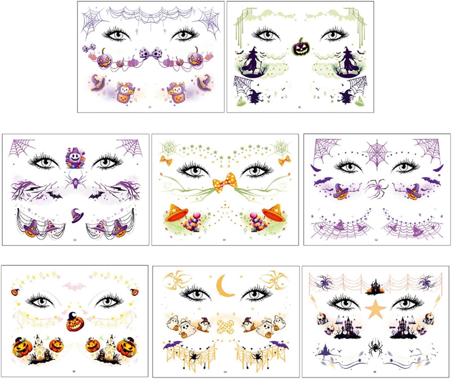 Atmosfera festosa: stai cercando di creare un look spettrale per Halloween? Gli adesivi per il viso di Halloween sono un must. Con i disegni festivi dei cartoni animati con fantasmi, lanterne, streghe e vampiri, sarai il centro di attrazione di ogni festa. Preparati ad abbracciare il fascino di Halloween con gli adesivi per il viso. Divertimento sano: gli adesivi per il viso di Halloween sono realizzati con inchiostri e adesivi innocui, garantendo che siano completamente innocui. Puoi utilizzare adesivi delicati sulla pelle con sicurezza, senza preoccuparti di disagio o sostanze nocive. Inoltre, sono facili da rimuovere con il nostro olio per capelli ricostituente di facile utilizzo: rimuovi la pellicola protettiva e attacca questi adesivi per il viso di Halloween sulla pelle pulita e asciutta. Anche chi può farlo: un'attività divertente per tutte le età. Ampia varietà di applicazioni: migliora qualsiasi evento con gli adesivi per il viso di Halloween. Versatile per molte occasioni come compleanni, spettacoli e feste di Halloween. Ottimo anche per il gioco quotidiano o per gli eventi scolastici. Ottimo come regalo: migliora il tuo costume di Halloween con il nostro set unico di adesivi per il viso. Facili da applicare e rimuovere, questi adesivi sono perfetti per chi ama travestirsi e andare alle feste. Regali ideali per ogni occasione