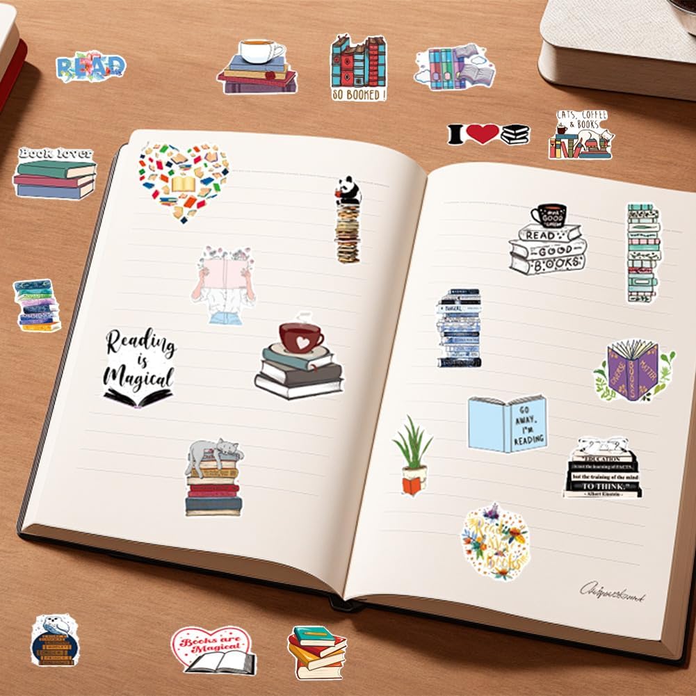 Set di adesivi da libro: l'adesivo da lettura ispiratore contiene 100 adesivi diversi come mostrato nell'immagine, raffiguranti diversi slogan ispiratori e scene di lettura. Quantità e varietà sufficienti, possono soddisfare le mutevoli esigenze della combinazione. Molti modelli: ci sono diverse parole motivazionali e modelli divertenti su ogni adesivo estetico del libro vintage che possono farti sentire positivo e ridere ogni giorno. Possono essere posizionati in luoghi diversi per garantire buone condizioni sempre e ovunque. Facile da attaccare: questi adesivi in vinile sono realizzati con adesivo antitraccia, adesivo resistente, rimovibile e riposizionabile. Ciascuno può essere facilmente incollato ripetutamente o rimosso senza lasciare residui. Ampi scenari di applicazione: gli adesivi colorati con graffiti non sono adatti solo per i libri, ma sono ottimi anche per chitarra, skateboard, computer per scrapbooking, pareti, telefoni cellulari, bottiglie d'acqua, valigie e possono essere utilizzati su agende e buste, materiale scolastico e qualsiasi altra superficie che desideri decorare. Regali perfetti: l'adesivo con design a tema di lettura è un ottimo regalo per bambini, amici e ragazzi e ragazze di tutte le età, che può migliorare i sentimenti. Il design creativo e unico di questi accessori per album ti lascerà a bocca aperta.