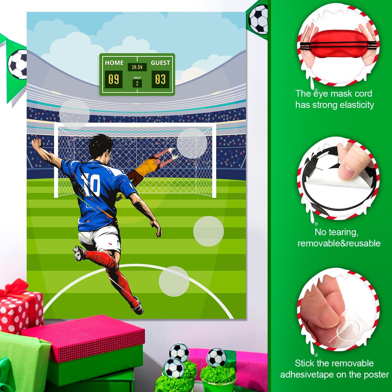 Pacchetto giochi per feste di compleanno di calcio: questo gioco di società include 1 poster di partite di calcio, 1 adesivo con punti, 2 bende con decorazioni di calcio e 3 adesivi di partite di calcio, che possono offrire un intrattenimento meraviglioso per la tua festa di compleanno di calcio. Design creativo: i grandi poster delle partite di calcio nei giochi di compleanno di calcio sono appositamente progettati per le feste di calcio, mostrando una scena di gioco di calcio selvaggia, che può facilmente creare una forte atmosfera calcistica per la tua festa a tema calcistico e far risaltare la tua festa di calcio. 【Come si gioca】 I giochi per feste di compleanno di calcio sono facili e divertenti! Metti semplicemente il poster della partita di calcio sul muro, organizza una festa di calcio con gli occhi bendati e cerca di avvicinare gli adesivi di calcio il più vicino possibile all'area di porta. Vince chi alla fine si trova più vicino all'area di porta! 【Alta qualità】 I nostri grandi poster di partite di calcio e adesivi di calcio per bambini sono realizzati in materiale cartaceo di alta qualità, spesso e resistente, non facile da strappare e può offrire ai tuoi ospiti un'esperienza unica di gioco di compleanno a tema calcistico. 【Scenari applicabili】 I nostri giochi di compleanno di calcio sono un meraviglioso gioco di calcio, adatto per feste di compleanno di calcio, feste a tema calcistico, feste a tema sportivo, coppa del mondo di calcio, feste in classe e feste di carnevale. Puoi giocare con la famiglia, gli amici o i compagni di classe.