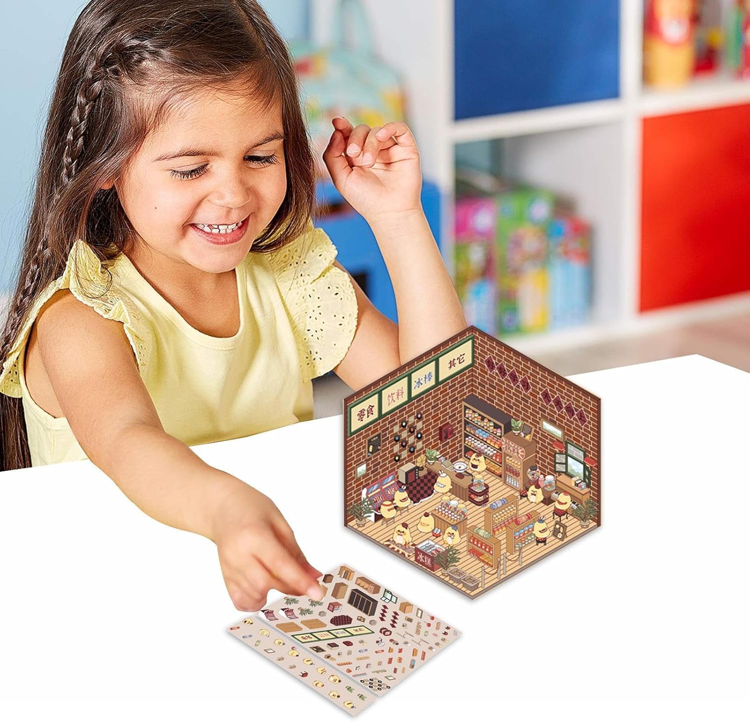 Stress Buster: sblocca un'esperienza rilassante e divertente, mentre sei coinvolto in attività di adesivi creativi che agiscono come un hobby creativo per superare lo stress quotidiano Costruito per durare: questi fanno sì che i tuoi adesivi per la casa siano realizzati in materiale perfetto, garantendo forza e durata per un uso a lungo termine. La loro durata ineguagliabile e l'adesivo durevole lo rendono una scelta responsabile per le tue esigenze di domanda permanente Facile da usare: rendi i tuoi sogni di decorazione della casa una realtà con adesivi per la casa. Attaccali sulle superfici desiderate senza tagli o passaggi complicati, risparmiando tempo e fatica, portando uno stile istantaneo al tuo spazio Bel regalo: il nostro truccatore della casa offre un'esperienza emozionante per i , lasciandoli liberare la loro creatività e immaginazione. Perfetto per il giorno dei , i compleanni o tutte le feste, questi adesivi fanno un regalo incredibile Forma di casa amichevole: Presenta il tuo talento con adesivi per la casa. Aggiungi profondità e divertimento a quaderni o oggetti personali presentando perfettamente vari elementi di stanza e mobili, creando un'accattivante scena di cottage 3D