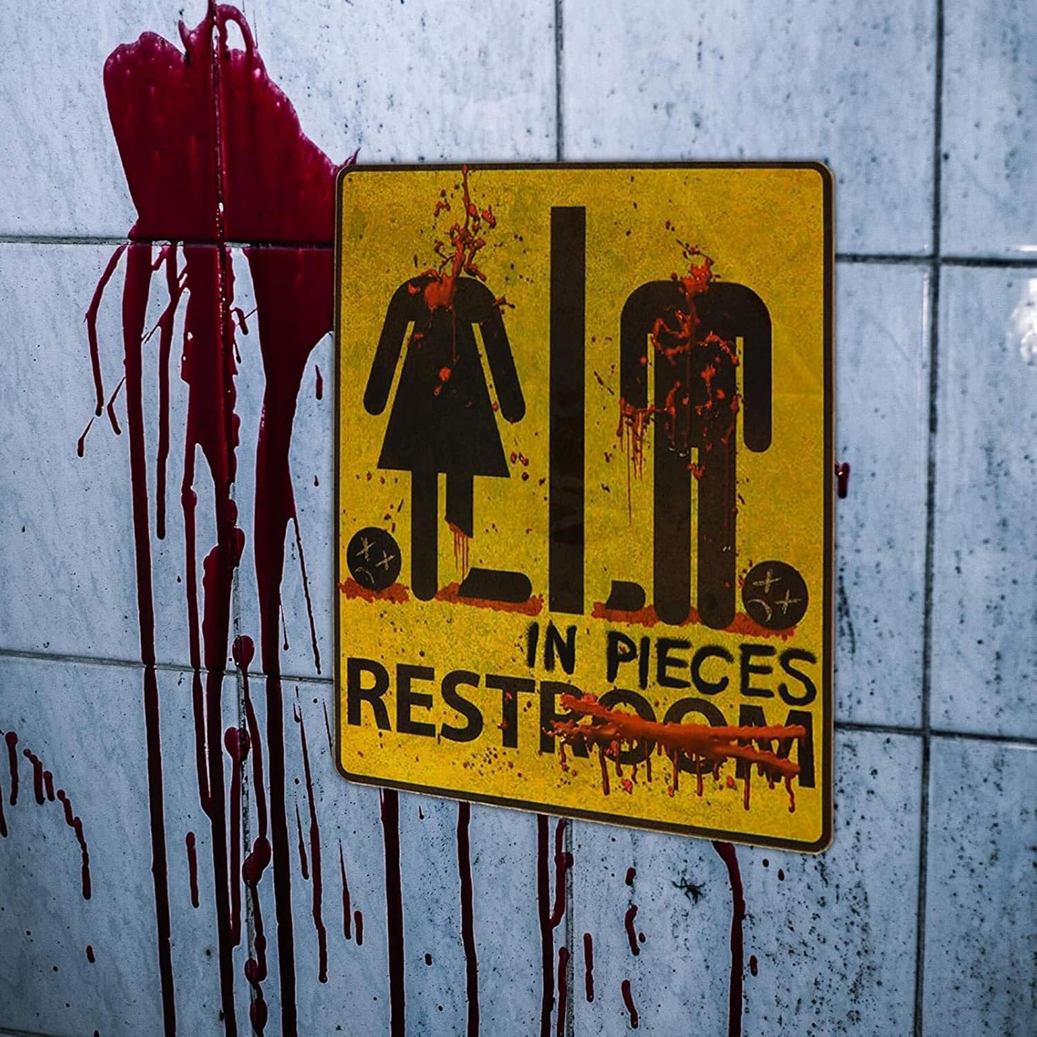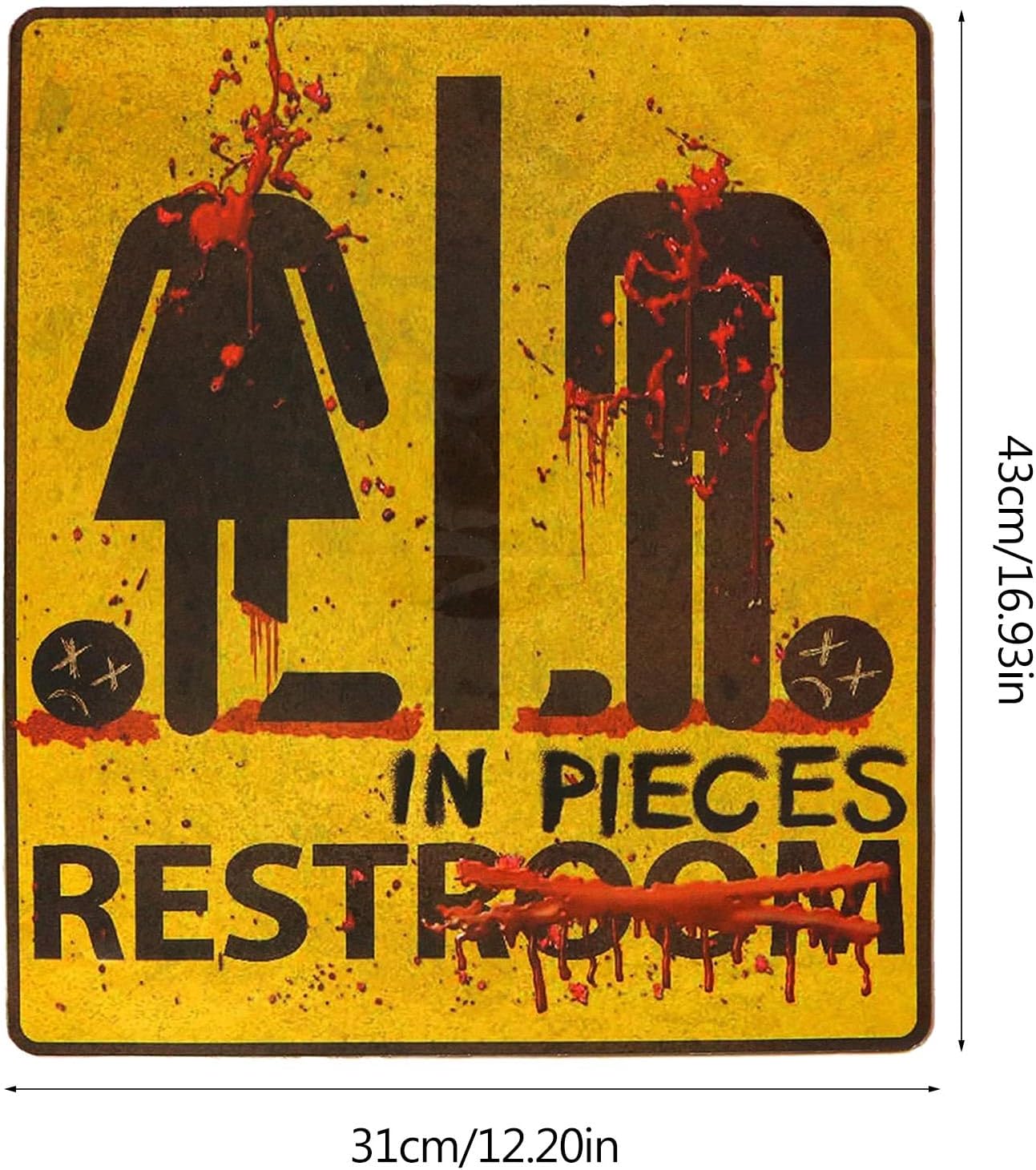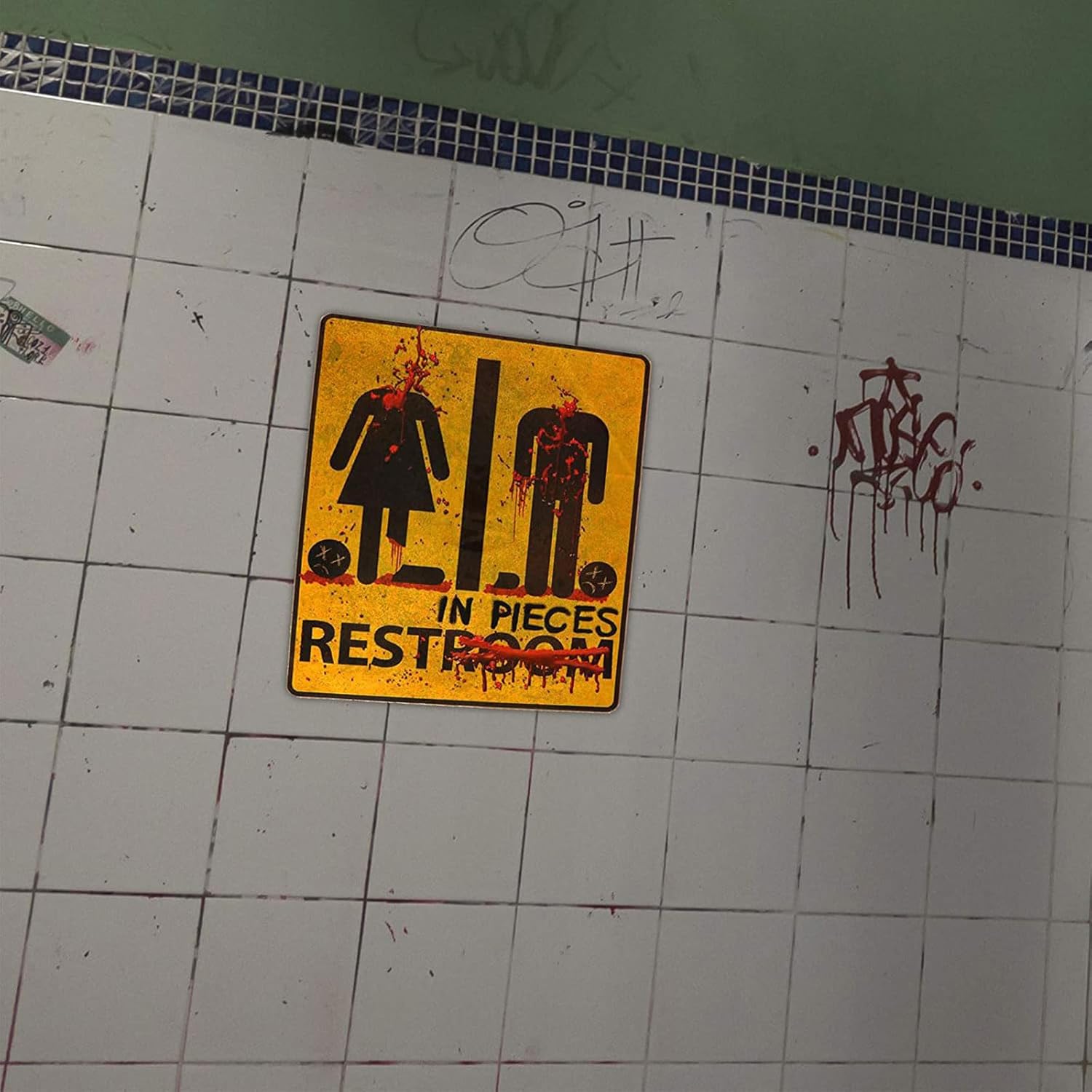 Rimovibile e riutilizzabile senza lasciare superfici danneggiate o residui. Puoi creare un finale straordinario per la tua festa. Regala un brivido ai tuoi ospiti mentre cercano il bagno. Un simbolo di donna e uomo smembrato su un cartello macchiato di sangue che cambia la parola "Toilet" in "Rest in Piece" Orribile rende la festa di Halloween più interessante e impressionante Gli adesivi murali insanguinati sono sicuri e per un uso a lungo termine Adesivi per il bagno horror: adatti per pareti piatte o lisce, piastrelle, vetro e altro ancora
