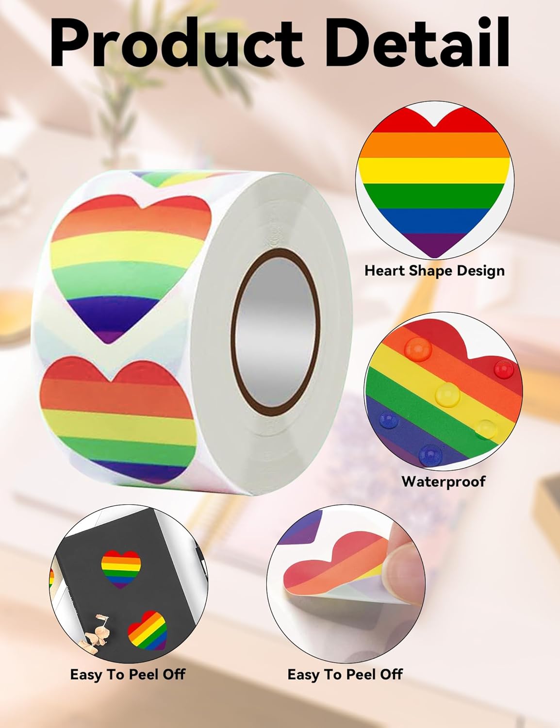 MATERIALE DI QUALITÀ: Le adesivi sono realizzate con materiale impermeabile di alta qualità. Durevoli e mantengono colore e resistenza anche a contatto con l'acqua. DISEGNI VARI: Il rotolo contiene 500 adesivi con motivi vari di cuori arcobaleno, colori vivaci e dettagli nitidi. FACILE DA USARE: Basta staccare e attaccare. Le adesivi si rimuovono facilmente dal rotolo e si applicano senza sforzo su superfici lisce. PUBBLICO DI RIFERIMENTO: Queste adesivi sono perfette per chiunque voglia mostrare il proprio supporto alla comunità LGBTQ. Possono essere usate alle parate del Pride, agli eventi o nella vita quotidiana. AMPIA APPLICAZIONE: Utilizzabili su album, tazze, laptop, biciclette, quaderni o vestiti per esprimere la propria personalità.