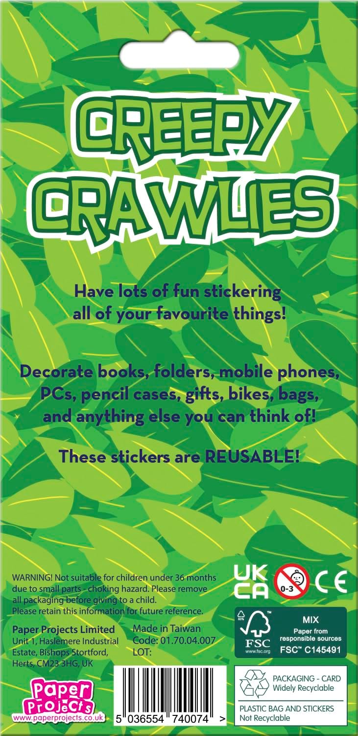Sparkle Sticker presenta una varietà di Creepy Crawlies Adesivo lucido di alta qualità. Gli adesivi sono superfici riutilizzabili e non porose da pulire. Divertimento per la decorazione e il gioco creativo. Confezionato con un'attraente carta di reso