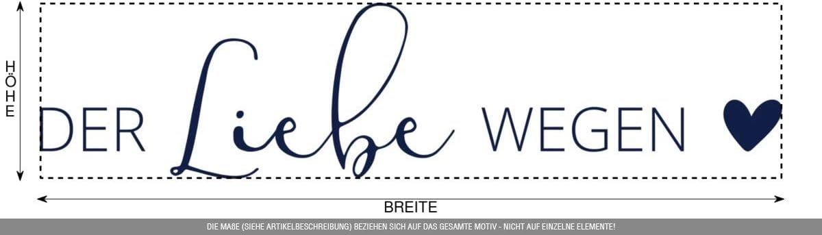 Motivo adesivo "Because of love", pellicola ad alte prestazioni metallizzata Oracal 951 blu scuro, pellicola in PVC colato, lucida, autoadesiva, resistente alle intemperie e all'acqua di mare, lavabile, con resistenza alle alte temperature, durata: 10 anni Larghezza: 100,0 cm, altezza: 23,8 cm (si riferisce sempre all'intero motivo e non ai singoli elementi), adesivo nel colore blu scuro metallizzato, qualità, design e copyright CLICKANDPRINT.DE Der Liebe causa di / cuore / amore / matrimonio / coppia / vita / matrimonio / scritta / adesivo decorativo / adesivo per auto / adesivo / decalcomania / adesivo per auto / adesivo / vinile / PVC Realizzato individualmente per voi in Germania, realizzato con pellicola di alta qualità per la decorazione e il design di una vasta gamma di superfici come pareti, carta da parati e molto altro ancora. Adattamenti individuali (nome ecc.) possibili su richiesta! Motivo sagomato, autoportante senza sfondo - fornito con pellicola di trasferimento per una facile installazione e istruzioni di applicazione originali di CLICKANDPRINT.DE! Autoadesiva in tanti colori brillanti, con vari effetti, resistente agli agenti atmosferici e ai raggi UV.