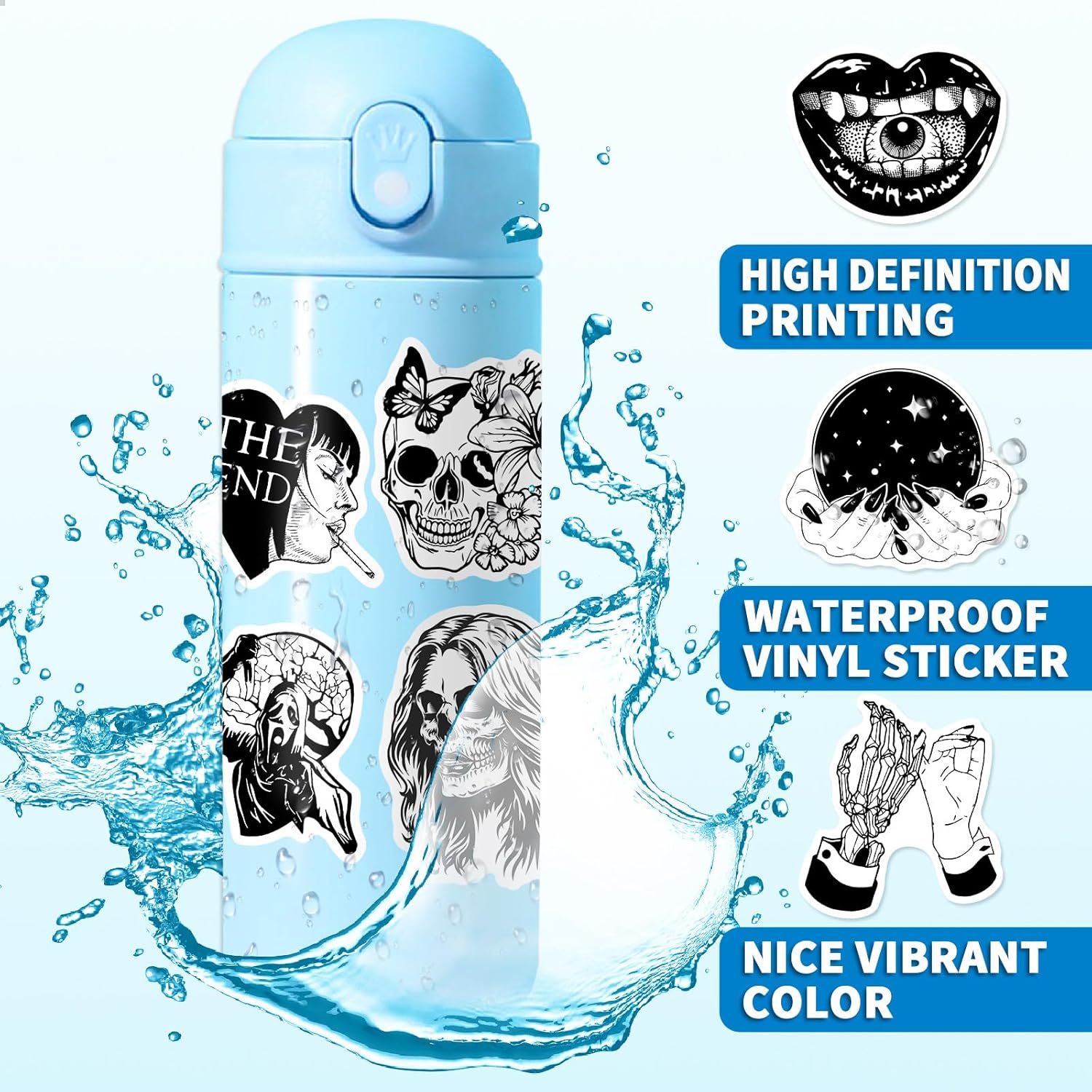 Nessun duplicato, le loro dimensioni vanno da 2 pollici a 2,8 pollici, gli adesivi dal design unico rendono più divertente la tua vita. Progettato per adolescenti, adulti, ragazze, adulti. Nella confezione sono presenti 50 diversi adesivi per bottiglie d'acqua. Adesivi molto interessanti per personalizzare la tua vita. Il miglior regalo, decorazione per la festa e un modo fantastico per trascorrere il tempo libero. Perfetto per la tua creatività e individualità. Perfetto per personalizzare laptop, skateboard, valigie, automobili, paraurti, biciclette, valigie, motociclette, snowboard, album di ritagli, specchi, quaderni, riviste, tazze, veicoli, chitarre, camere da letto, pareti, porte. Tutti gli adesivi in vinile sono realizzati in PVC vinilico di alta qualità, rendendo questi adesivi più durevoli, di alta qualità, protettivi dal sole e impermeabili. La qualità dell'adesivo è buona e dura a lungo. I nostri adesivi sono nuovissimi al 100% con stampa ad alta definizione, i motivi sono più precisi e chiari. Ogni simpatico adesivo impermeabile può essere tagliato perfettamente in base alla forma e alle dimensioni, che può essere utilizzato direttamente.