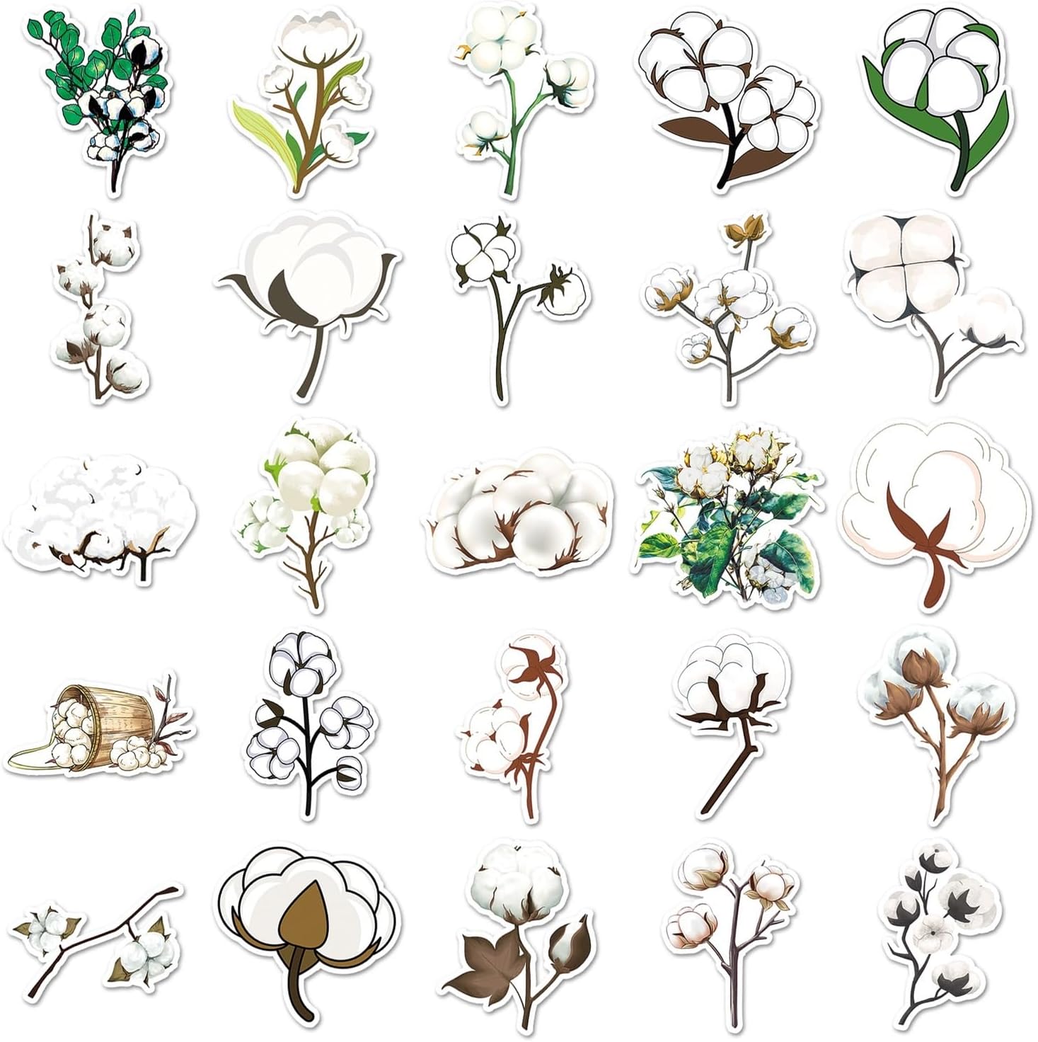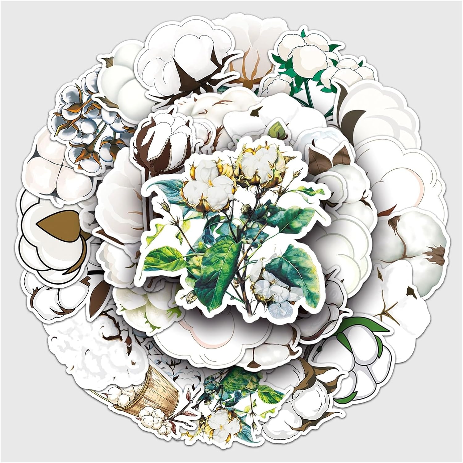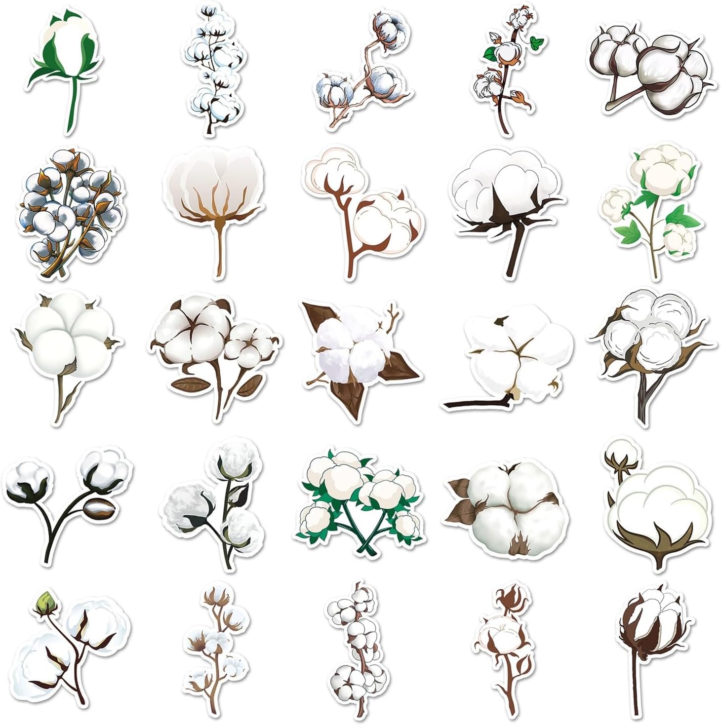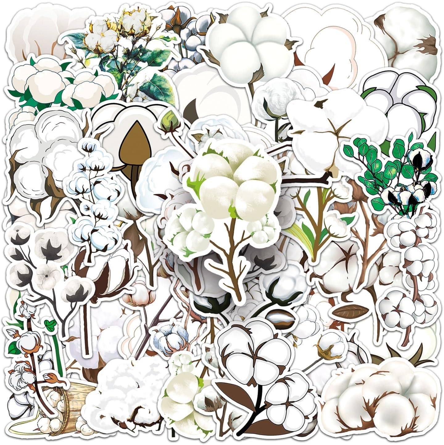Adesivo in vinile Fiore di cotone Carino Minimalista Pastello Botanico Estetico Impermeabile Laptop Valigia Skateboard Bottiglia d'acqua Diario Ragazze adolescenti Adulti