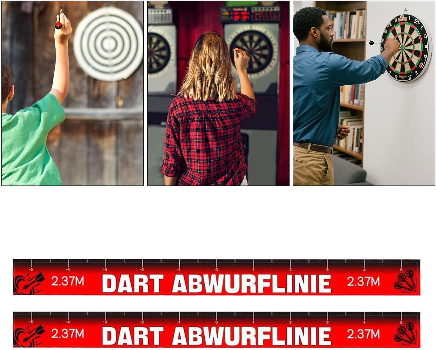 Design Fair Play: promuove il corretto posizionamento del piede e l'allineamento ottimale per aumentare la precisione e la consistenza, con una linea di lancio visibile che garantisce equità in ogni configurazione competitiva Linea di freccette di dimensioni standard: il set include due linee di lancio per freccette da 56 x 5 cm, che offrono lunghezza e qualità sufficienti per il gameplay mentre funge da opzione di ricambio ideale per completare la configurazione delle freccette senza sforzo Installazione senza sforzo: assicura una forte adesione alla maggior parte dei tipi di pavimento, consentendo un'applicazione o rimozione rapida e senza sforzo, adatto a tutti i livelli di giocatore, migliorando la comodità e risparmiando tempo durante l'installazione Costruzione robusta e robusta: la linea di lancio delle freccette utilizza una robusta carta patinata che aderisce saldamente, resistendo alla desquamazione, allo sbiadimento e all'esposizione all'acqua per prestazioni affidabili Applicazione completa: un must per gli appassionati di giochi, funziona bene in casa, bar o feste, offrendo una configurazione professionale di freccette che garantisce divertimento e versatilità ovunque utilizzato