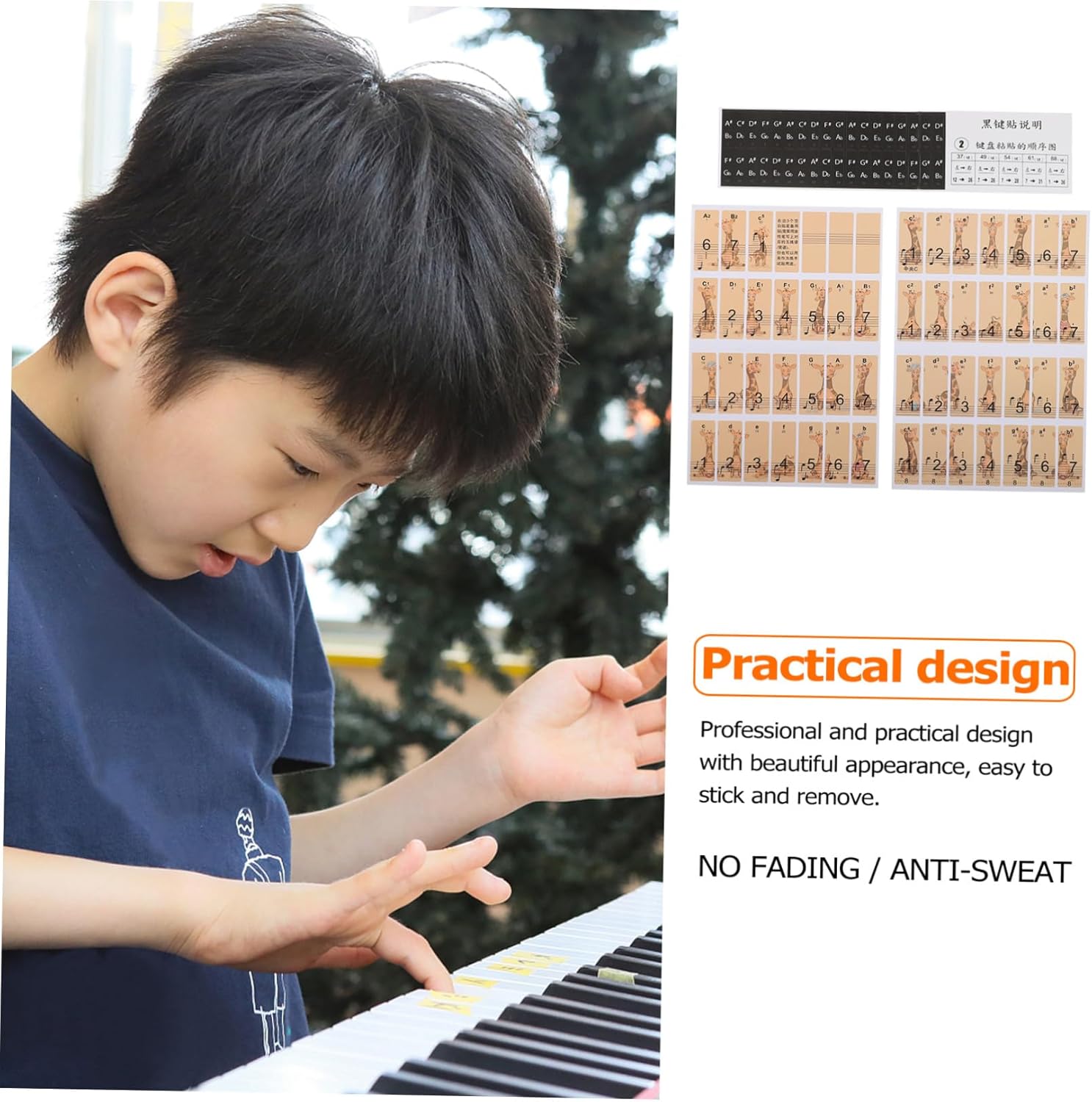 Adesivo pratico per principianti di pianoforte - Progettato appositamente per pianoforte e organo elettronico, ideale per i principianti per memorizzare i tasti, adesivi per principianti di pianoforte Adesivo per tastiera di pianoforte - È molto sottile e può essere applicato sulla tastiera per ridurre al minimo l'impatto sul suono. Accessori per pianoforte Adesivo pratico per tastiera di pianoforte - Leggero e pratico, difficilmente senti la tua presenza mentre suoni il pianoforte, Adesivi per pianoforte Adesivi per pianoforte - Design professionale e pratico con un bell'aspetto, facile da installare e rimuovere, Accessori per strumenti musicali Adesivi per introduzione al pianoforte - Gli adesivi si adattano perfettamente alla tastiera e sono chiari e facili da leggere, rendendo più facile imparare a suonare il pianoforte