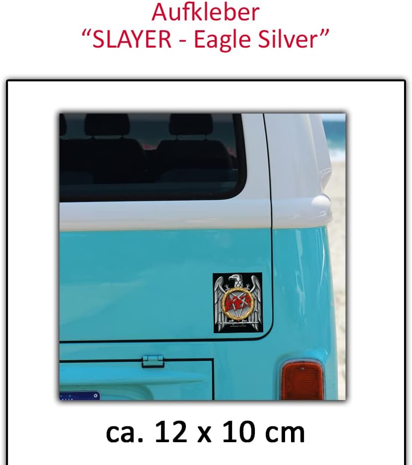 Adesivo Slayer Aquila d'argento Dimensioni ca. 12x10 cm Resistente ai raggi UV e agli agenti atmosferici, adatta per autolavaggi Pellicola di qualità per stampa digitale di Orafol Made in Germany, prodotto con licenza ufficiale