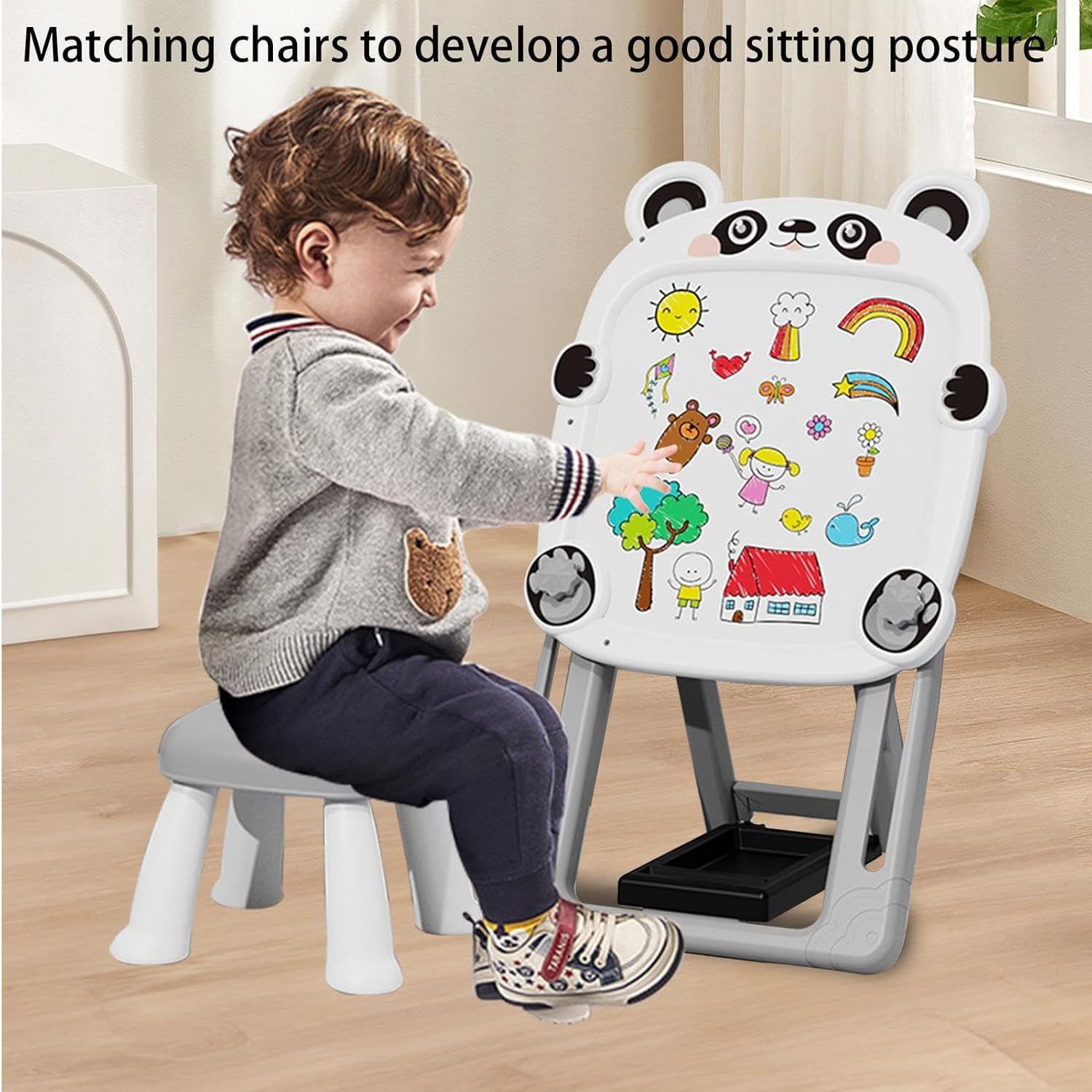Double-Sided Fun: This drawing board provides two sides for endless creativity, magnetic whiteboard and chalkboard. Perfect for kids to explore both writing and drawing with magnets, chalk, and markers for educational play Adjustable Height for Comfort: Designed with an adjustable stand, this easel can be set to various heights, providing your child with the perfect position for drawing or writing. It grows with your child, ensuring years of fun and learning Magnetic Features for Interactive Play: Equipped with a magnetic whiteboard, this board allows kids to use magnetic letters, numbers, and shapes for hands-on learning. The magnets are perfect for creative exploration and educational activities Portable and Foldable Design: Lightweight and foldable, this drawing board is easy to store and carry. Whether at home, the convenient foldable design makes it perfect for travel or compact storage when not in use Sturdy and Safe Materials: Made from quality ABS material, this drawing board is built to last and safe for kids. The sturdy frame and smooth surfaces ensure hours of enjoyable, fun drawing and learning activites