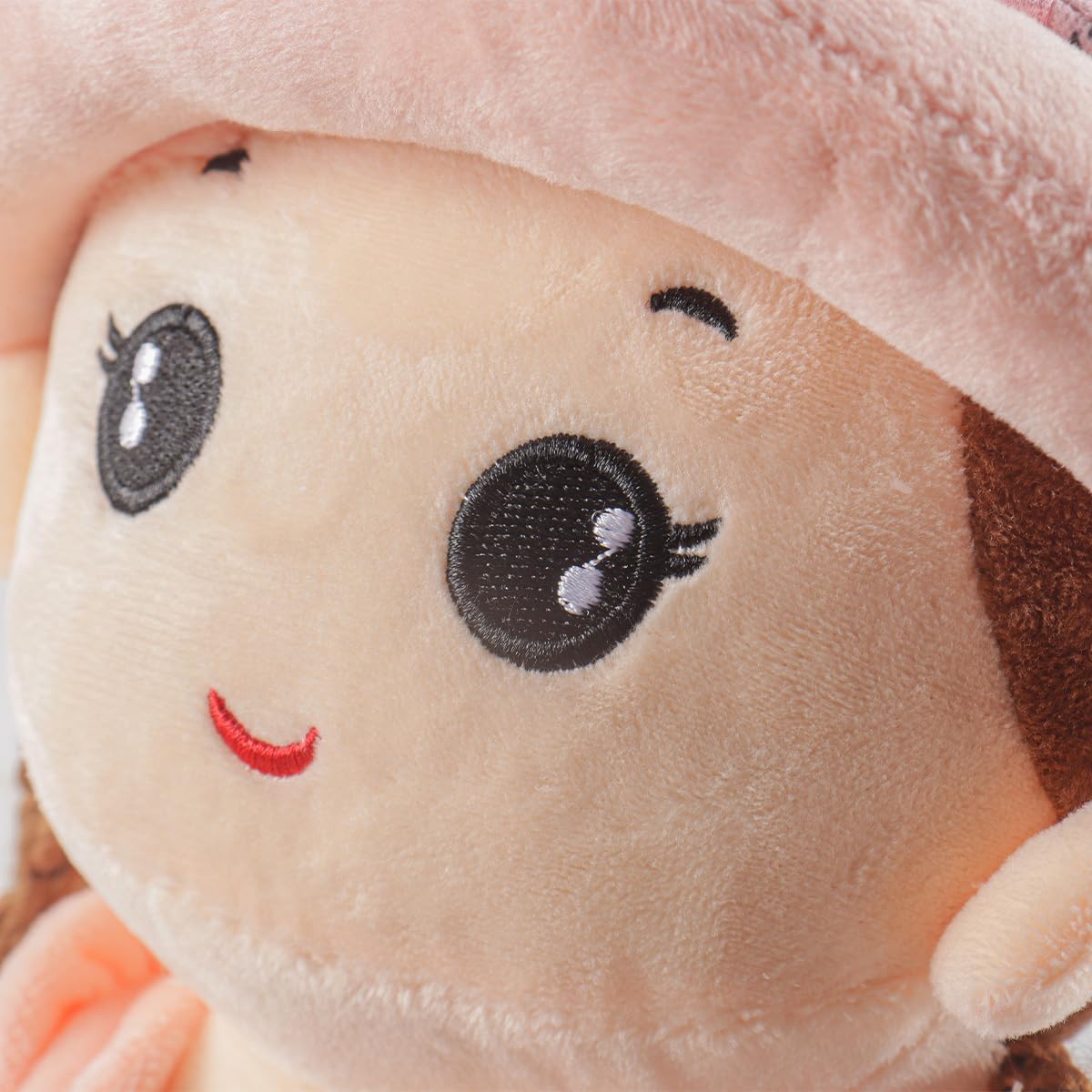 Questa bambola dal corpo morbido presenta tratti del viso ricamati realistici, un vestito di cotone rimovibile ornato con un'incantevole stampa floreale e un cappello coordinato rimovibile. I suoi lunghi capelli, realizzati in cotone intrecciato con una consistenza elastica, sono raccolti in due adorabili chignon, creando un look accattivante che catturerà il cuore del tuo piccolo. Misurando 35 cm, questa bambola è perfetta per le piccole coccole, ideale per giocare o fare un pisolino. Un fedele compagno di peluche, offre conforto e tranquillità, favorisce l'apprendimento delle abilità genitoriali e stimola la creatività e l'immaginazione, evolvendo al tuo fianco attraverso innumerevoli avventure. Realizzata artigianalmente con un corpo in peluche e abiti ultra morbidi, questa bambola di peluche è incredibilmente morbida al tatto. La sua leggerezza e l'aspetto coccoloso lo rendono piacevole da tenere in mano, con una consistenza morbida e gradevole che invita a infinite coccole. Realizzata in morbido peluche e cotone di qualità, questa bambola è delicata sulla pelle e sicura per i più piccoli. L'attenta lavorazione artigianale garantisce una consistenza confortevole e una struttura durevole che resiste al gioco e agli abbracci quotidiani. Questa bambola è un regalo delizioso per i neonati: perfetta per una nascita, un battesimo o un baby shower. Può anche servire come decorazione affascinante per la stanza di una ragazza ed è un regalo meraviglioso per ragazze di tutte le età, portando gioia e compagnia a tutti.