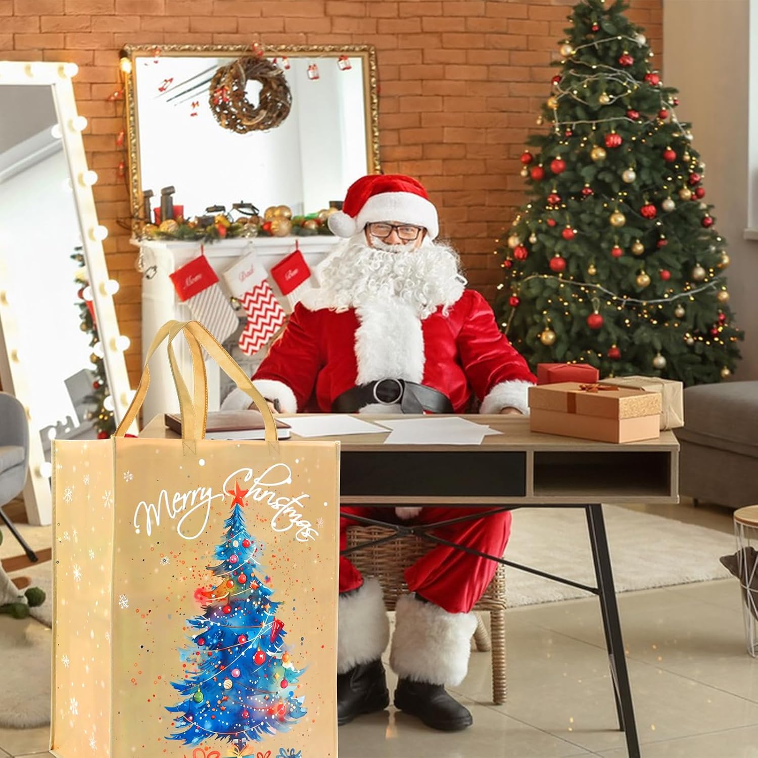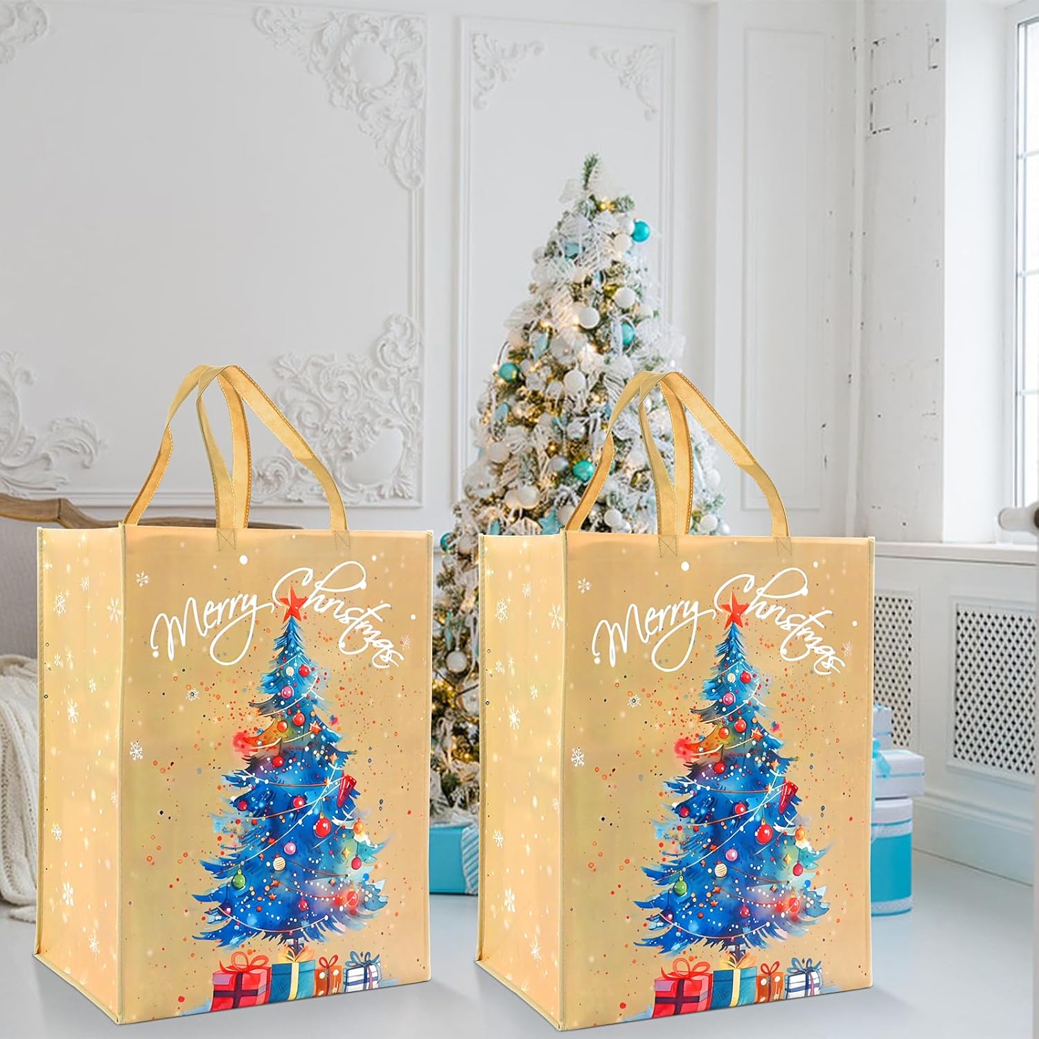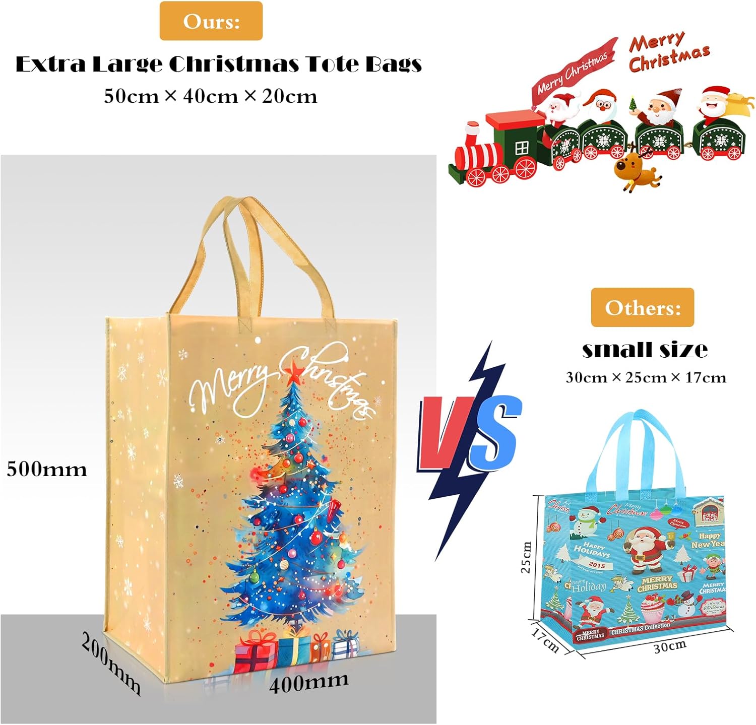 Il pacchetto include: 2 sacchetti regalo di Natale extra large, sono dello stesso colore e dimensione. La dimensione dei sacchetti natalizi in tessuto non tessuto è 50 x 40 x 20 cm. Soddisfa le esigenze della confezione regalo di Natale e dello shopping quotidiano. Materiale pratico: le nostre borse natalizie sono realizzate in tessuto non tessuto di alta qualità, il che è molto pratico. È solido, impermeabile e riutilizzabile. La nostra borsa natalizia è un sostituto perfetto dei sacchetti di carta, dei sacchetti di plastica e dei cestini. È molto adatto per le feste di Natale. Design premium: i sacchetti regalo di Natale hanno un design unico. Il motivo della borsa natalizia in tessuto non tessuto è luminoso e colorato. Albero di Natale, scatole regalo natalizie stampate in diversi colori. Applicazione: queste grandi borse da trasporto sono favolose. Perfetto per trasportare un contenitore di biscotti, dolcetti, caramelle o altri regali di Natale da regalare a insegnanti, amici, familiari o vicini. Ideale per regali, regali o ringraziamenti Miglior servizio: la nostra borsa per dolcetti natalizi è facile da aprire e piegare, il che è comodo per riporre gli oggetti e conservarli per il prossimo utilizzo. Se non sei soddisfatto, vorremmo rimborsarti per intero. Il tuo problema può essere risolto entro 24 ore