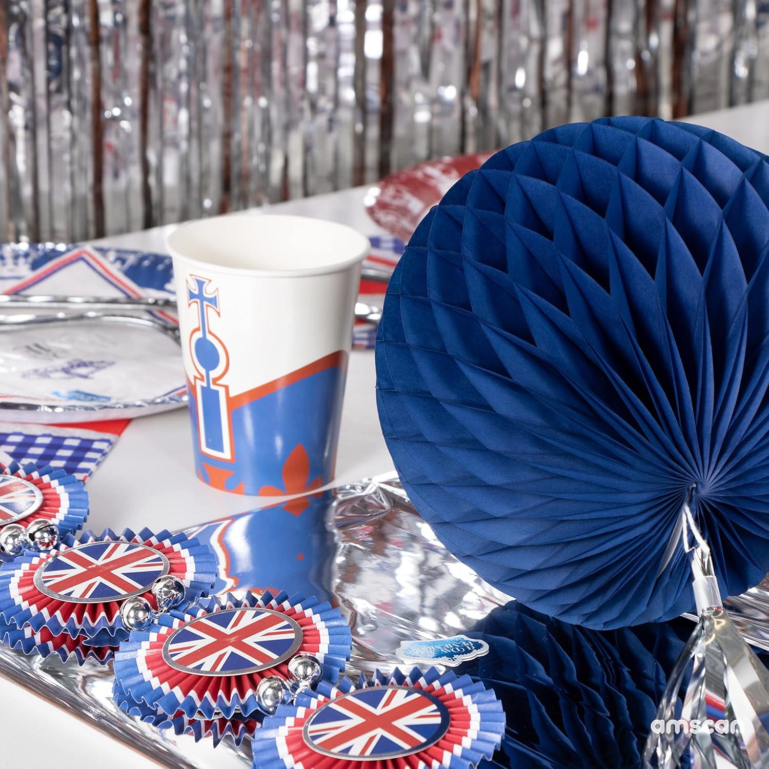 Festeggia l'incoronazione dei re con fantastiche novità della festa Britannia! Union Jack design rifinito con un bordo argento. Celebrate the Kings Incoronation con fantastiche novità per feste Britannia