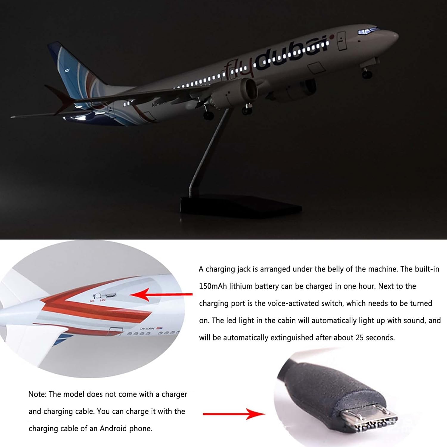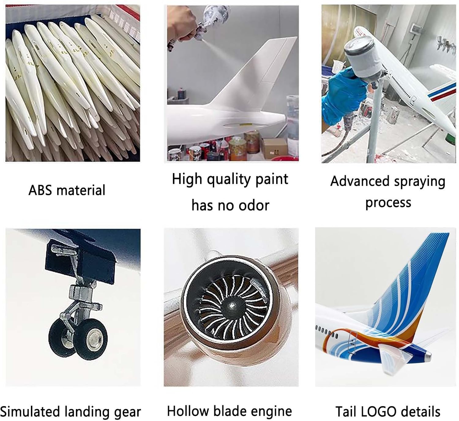 Aeromodello - Il grande aeromodello è dotato di illuminazione interna a LED, inclusa l'illuminazione della cabina di pilotaggio. È piuttosto luminoso e si presta alla creazione di un modello statico più creativo. Le luci a LED si accendono quando si attiva un aeromodello vocale o si tocca, molto affascinante, e l'aeromodello si spegne automaticamente dopo 20 secondi. Ricaricabile tramite USB. Aeroplani pressofusi - Ogni dettaglio del nostro modello di aereo è estremamente realistico, realizzato in lega pressofusa di alta qualità e con vernice spray di alta qualità: un modello decorativo imperdibile. Ricco di dettagli, dalle alette dei motori ai dettagli della vernice. Le pale principali della ventola ruotano e le ruote possono girare. Modello da esposizione: corpo in resina di alta qualità, base trapezoidale in legno e staffa in metallo, stabile e in grado di sostenere l'aereo molto bene. Installabile con carrello di atterraggio come modello decorativo. Sarà un'ottima decorazione for la casa. Decora la tua scrivania, ufficio, casa, vetrina. Ottimi regali: il modello di aereo pressofuso può essere usato come regalo di compleanno, regalo di Natale e regalo aziendale, è un oggetto da collezione for gli amanti dei modelli e gli appassionati di aviazione. Il modello dettagliato è davvero bello da esporre a casa, in ufficio, in libreria, in studio o sulla scrivania. Nota: alcuni accessori dei modelli di aerei pressofusi sono affilati e piccoli, evitare lesioni o ingestione accidentale durante il gioco. Lo imballeremo in una bella e ben protetta scatola modello