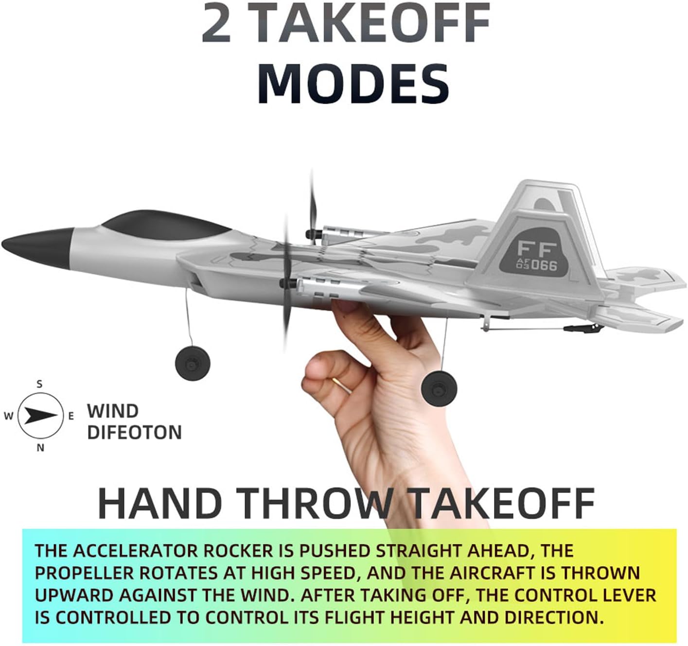 Funzioni multiple: l'aereo telecomandato può salire/abbassarsi/girare a sinistra/girare a destra/avanti/indietro/volare a sinistra/volare a destra/rotolare indietro/rotolare a sinistra/rotolare a destra/rotolare in avanti/rotolare indietro/volare all'indietro/volo con rotazione di 360 gradi, completo di manovre acrobatiche difficili per darti più divertimento. Frequenza 2,4 GHz: aereo RC sul campo senza ostacoli, la distanza massima del telecomando dell'aereo può raggiungere 200 metri, i giocatori possono controllare l'aereo in modalità wireless a istruzioni all'aereo tramite segnali wireless e comandare all'aereo di eseguire vari movimenti. Può essere giocato con più giocatori contemporaneamente, il segnale non interferisce tra loro Due batterie di grande capacità: l'aereo modello controllato a distanza utilizza una batteria al litio ad alta capacità da 3,7 V 800 mAh, abbiamo configurato due batterie al litio per questo aereo, possono essere caricate ripetutamente, tempo di ricarica: 90 minuti, batteria singola in volo in modalità gru 6-8 minuti, volo in modalità 6D/3D 10-13 minuti Giroscopio intelligente: l'aereo telecomandato F22 ha un giroscopio da supportare, può facilmente stabilizzare l'aereo, è molto amichevole per i principianti, renderà il volo molto facile, può adattare questo aereo a una varietà di ambienti decollare, può decollare sulla pista, decollare sull'erba, puoi afferrare il decollo, ogni modalità di avvio è molto semplice Alte prestazioni: l'aereo RC per principianti è dotato di due potenti motori a corpo cavo, che consentono al modello di decollare facilmente da terra, anche se non hai mai volato su un modello prima