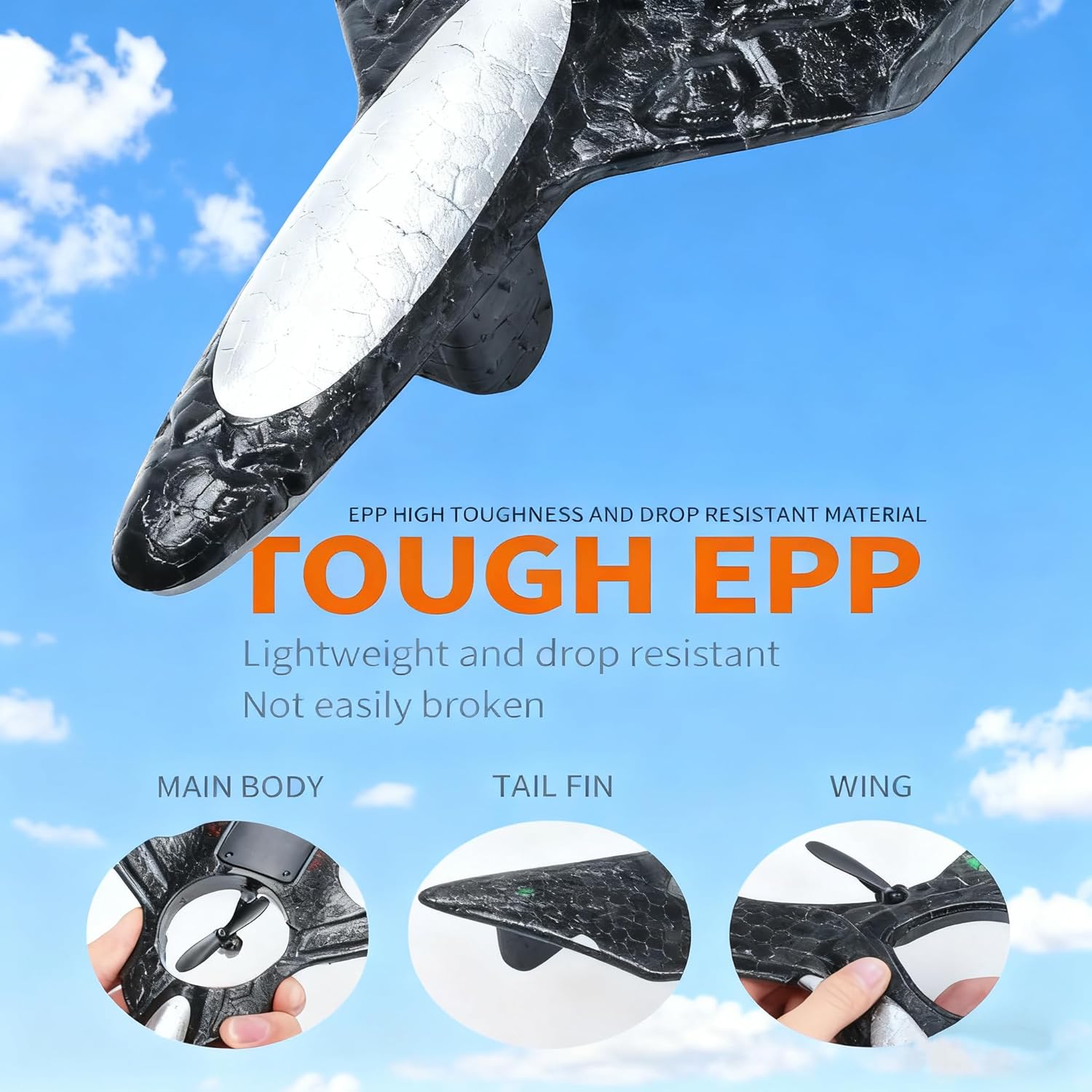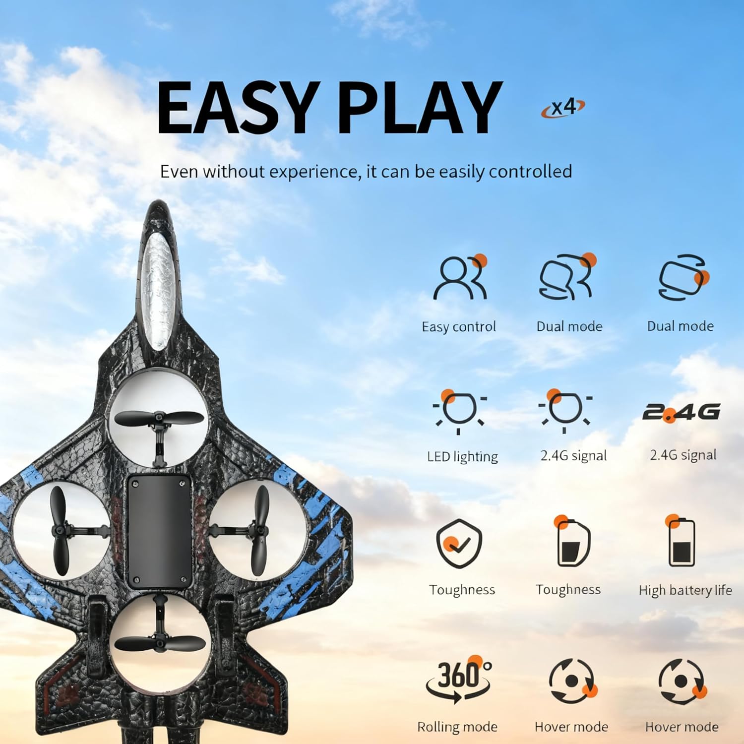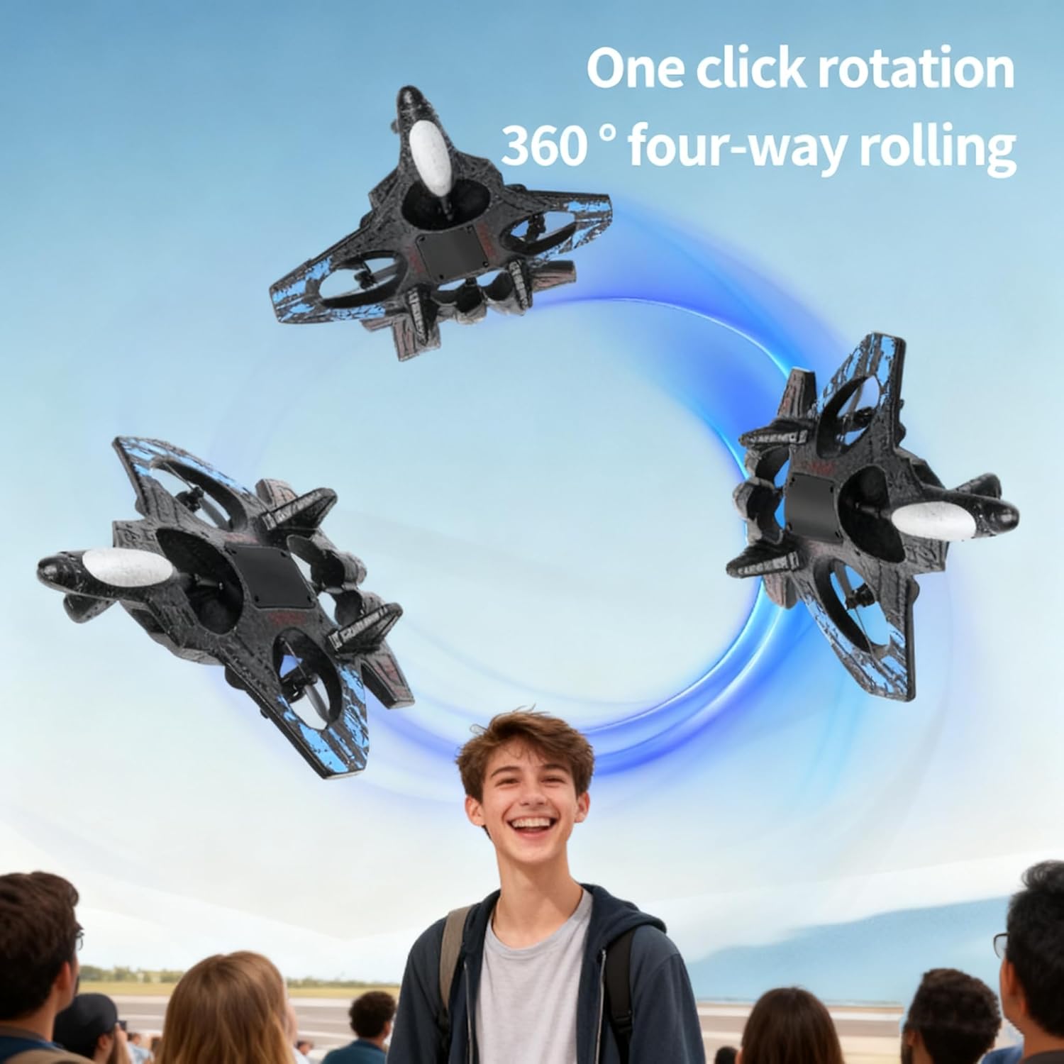 【 360° Flips and air acroba】 ricco di funzioni emozionanti come sensore di gravità, mulinelli acrobatici, rotazione a 360 gradi, avvio rapido, modalità headless, decollo/atterraggio tramite pulsante, mantenimento dell'altezza e tre opzioni di velocità, ecc. Dalla palestra della scuola fino all'elegante galleggiamento su una spiaggia sabbiosa – ogni volo. g è per il vostro bambino un'opportunità per dimostrare le sue abilità di volo e creatività Luce a LED: dotato di luci a LED luminose, l'aereo RC per bambini e adulti si distingue dal cielo notturno. Al tramonto, l'aereo RC si trasforma in uno spettacolo luminoso, lasciando una scia di luce nel cielo nelle sue manovre di volo. Nel campeggio familiare, l'aereo illuminato può essere il momento clou della serata e creare ricordi magici per tutti. Non solo è un ottimo modo per prolungare il tempo di gioco fino alla sera, ma aggiunge un tocco di magia a ogni volo e lo fa risaltare in qualsiasi ambiente, dal tranquillo giardino suburbano a un vivace evento comunitario 【Facile da usare】 Aereo telecomandato – nessun assemblaggio richiesto. Con una semplice pressione di un pulsante, lanciate il vostro aereo RC verso il cielo e atterrate in modo sicuro. Guarda gli occhi di tuo figlio brillare quando affronta incredibili manovre di volo. Il controllo intuitivo rende facile per bambini e adulti di tutte le età prendere il controllo del cielo, sia che si tratti di principianti o di esperienza di volo 【Combinazione di sicurezza, durata e divertimentoCon quattro eliche integrate e una struttura protettiva unica, questo aereo RC in schiuma protegge i bambini da eliche rotanti per bambini e adulti. La struttura morbida ma robusta in materiale EPP assicura che l'aereo salti di nuovo dopo ogni caduta ed è pronto per la prossima avventura, sia a casa, al parco o durante una gita in famiglia Regalo perfetto per i piloti in erba: che si tratti di una festa di compleanno, una sorpresa di vacanza o semplicemente così, questo aereo telecomandato è il regalo perfetto per ogni adulto e bambino che sogna di volare. Porta gioia infinita e ricordi indimenticabili. Regala questo regalo di volo e guarda gli occhi del pilota brillare di gioia
