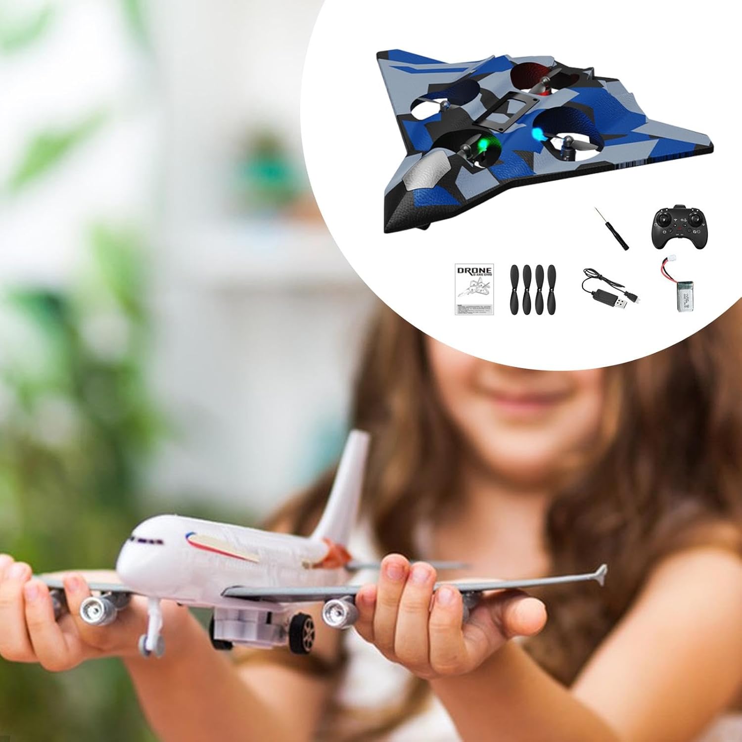 【 di volo intelligente】: dotato di un di volo intelligente, questo aereo presenta fantastici effetti di luce, arresto al tocco, mantenimento ' tramite stabilizzazione a pressione ' e potenti motori turbofan per prestazioni migliorate 【Facile da usare】: Dotato di 1 tasto per il decollo/atterraggio/ritorno e di hovering automatico , il deltaplano acrobatico RC rende semplice e accessibile a tutti. Il suo leggero materiale ne aumenta la resistenza agli urti, mantenendo al contempo l'agilità in . 【Design avanzato】: il jet da combattimento in schiuma RC è progettato sia per principianti che per appassionati, offrendo un'esperienza di volo facile da padroneggiare. L'aspetto estetico realistico e l'innovativo telecomando offrono un'avventura di volo unica 【Telecomando affidabile ed efficienza energetica】: tecnologia di controllo remoto ad da 2,4 GHz, goditi una trasmissione del segnale stabile fino a 100 m senza interferenze durante il multigiocatore. Offre 8-10 minuti di tempo di volo con capacità di ricarica rapida in soli 30-40 minuti, scelta regalo ideale per ogni occasione e tutte le età 【Capacità acrobatiche e caratteristiche di sicurezza】: Vivi manovre emozionanti con capovolgimenti a 360° e modalità per un controllo 'orientamento senza sforzo. La protezione completa 'aereo garantisce la sicurezza, prevenendo graffi e danni durante .