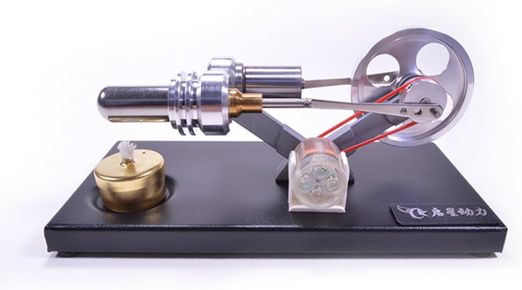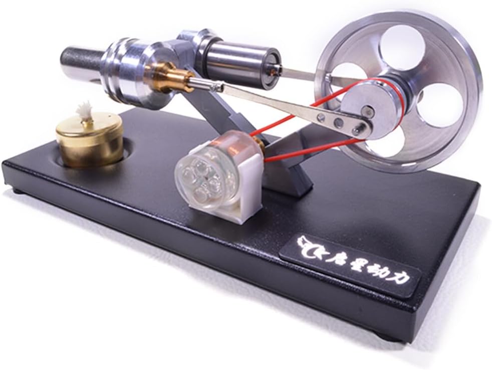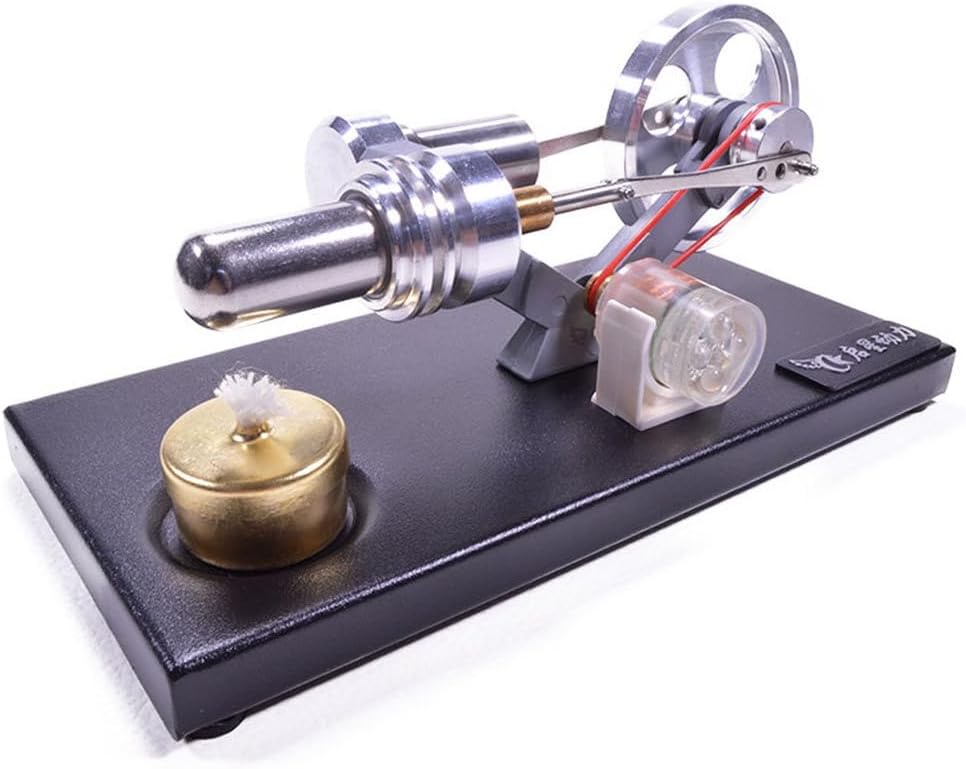 Alta qualità: con generatore, 4 luci LED. La piastra inferiore è realizzata in metallo e ha un'atmosfera nobile. Il volano, la boccola cilindro e il pistone del cambio sono realizzati in lega di alluminio, finemente fresato, strutturato e bello. Il supporto è realizzato in lega di zinco ed è solido e resistente. La biella è realizzata in acciaio inossidabile. Cilindro di forza e cilindro caldo sono realizzati in acciaio inossidabile e sono durevoli. Il modello complessivo è squisito, suggestivo e bello. I giunti dell'asse sono tutti collegati da cuscinetti in miniatura di alta precisione. Le boccole sono lucidate con ottone di precisione, che è stabile e non richiede lubrificazione. Il gameplay è interessante: il prodotto è un pezzo di ricambio e deve essere assemblato in base al riferimento del cliente. È molto divertente e il prodotto finito può essere utilizzato anche come decorazione. Può anche essere usato come decorazione e strumento didattico. Valore di utilizzo: grazie al fai da te puoi comprendere in modo più intuitivo la struttura e il principio di funzionamento del motore Stirling. Pensaci, prendi un giorno di lavoro, siediti, accendi una piccola lampada ad alcool, guarda le parti meccaniche della biella e altre parti, e la rotazione ad alta velocità del volano ti metterà nell'inganno, in modo che tu possa rilassarti e alleviare la tua stanchezza durante il giorno.