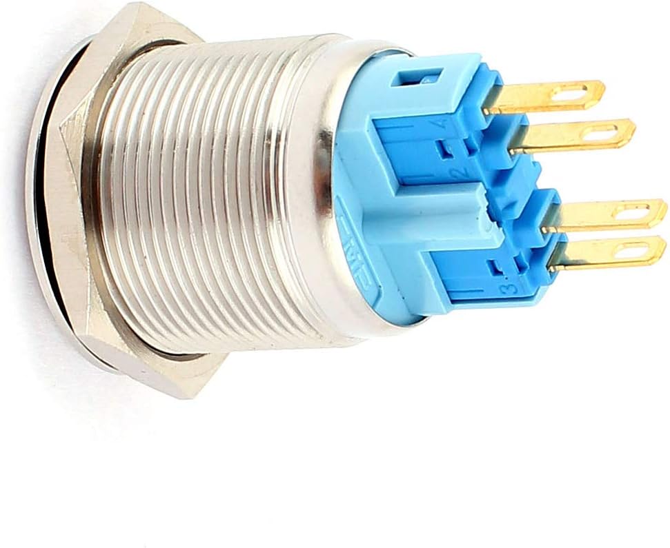 Pole and Throw: DPST; Tipo di isolamento: Latching (Self Locking); Dimensioni totali: 25 x 43mm / 1' 'x 1.7' '(Max.Dia x L) Nome prodotto: interruttore a pulsante; Paese di produzione: CINA Materiale: parti elettroniche, peso netto: 28g Contenuto della confezione: 1 x interruttore a pulsante; quantità terminale: 4 Dimensioni di montaggio: 22mm / 0.87' '; Colore principale: tono argento (KB43090824Q98649705Y)