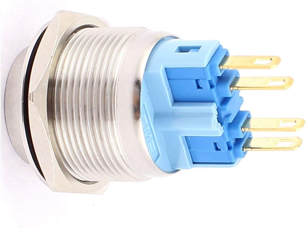 Pole and Throw: DPST; Tipo di Oysteration: Momentary; Dimensioni totali: 25 x 41mm / 1' 'x 1.6' '(Max.Dia x L) Nome prodotto: interruttore a pulsante; Paese di produzione: CINA Materiale: parti elettroniche, peso netto: 30g Contenuto della confezione: 1 x interruttore a pulsante; quantità terminale: 4 Dimensioni di montaggio: 22mm / 0.87' '; Colore principale: tono argento (VM78839147B68210884J)