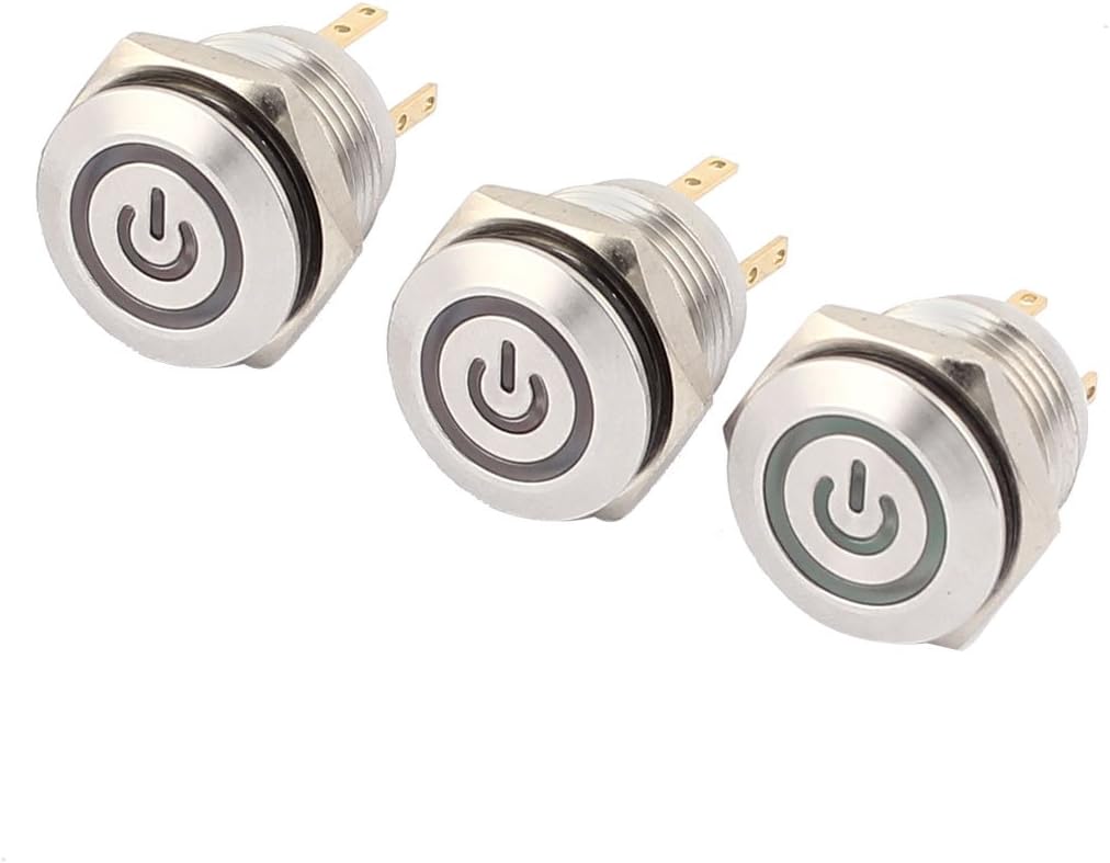 Tipo di lampada: LED; Tensione di : DC24V; Colore della spia LED: Rosso, Verde, Blu; Tipo di montaggio: Montaggio a incasso Dimensioni di montaggio: 16 mm / 0,63' 'Colore principale: tono argento, asta e lancio: SPDT Tipo di isolamento: Latch (); Dimensioni totali: 18 x 37 mm / 0,7' 'x 1,5' '(Max. X L); Nome del prodotto: Interruttore a pulsante LED Paese di produzione: CINA; Materiale: acciaio inossidabile; Peso netto: 42g Contenuto della confezione: Interruttore a pulsante 3Pcs x LED; Quantità terminale: 5; Tipo di contatto: Com + NO + NC (DU29204243J11225105R)